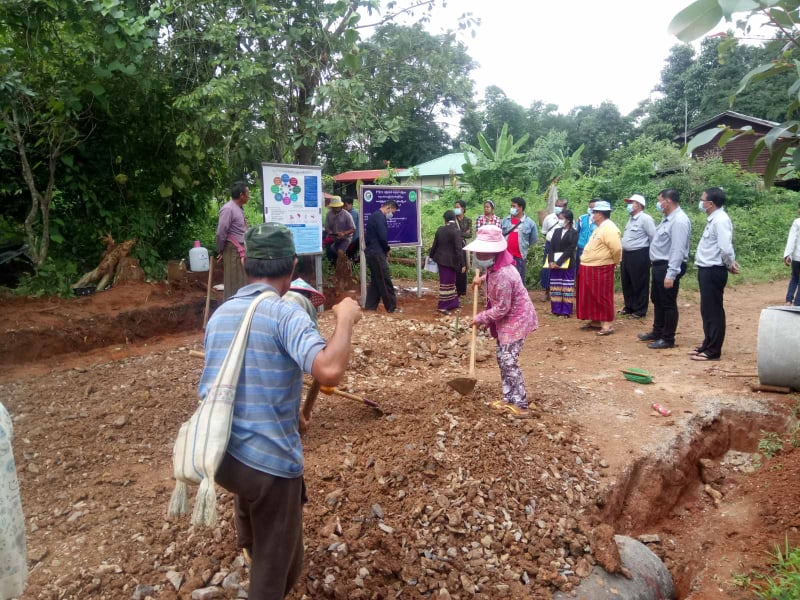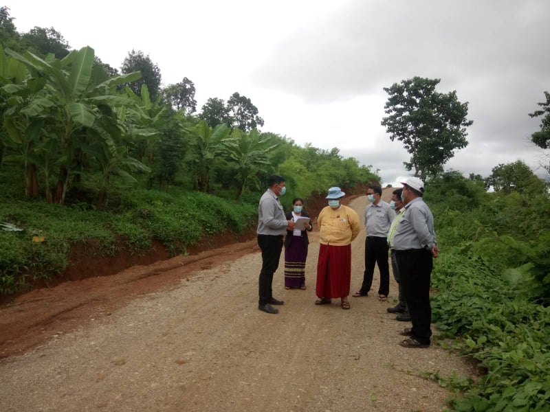 ကယားပြည်နယ်၊ လွိုင်ကော်မြို့နယ် ကျေးလက်ဒေသဖွံ့ဖြိုးရေးဦးစီးဌာန မှ COVID-19 စီးပွားရေး ကုစားမှု အစီအစဉ် Cash For Work (CFW) စီမံကိန်းလုပ်ငန်းများဖြင့် အကောင် အထည် ဖော် ဆောင်ရွက်နေသည့် ကျေးရွာများသို့ ယနေ့ နံနက်ပိုင်းတွင် ပြည်နယ် စိုက်ပျိုးရေး၊ မွေးမြူရေးနှင့် ဆည်မြောင်း၀န်ကြီးဌာန ၀န်ကြီးဦးဘော့စ်ကိုနှင့် တာ၀န်ရှိသူတို့က ကွင်းဆင်းစစ်ဆေးခဲ့ကြောင်း သိရသည်။