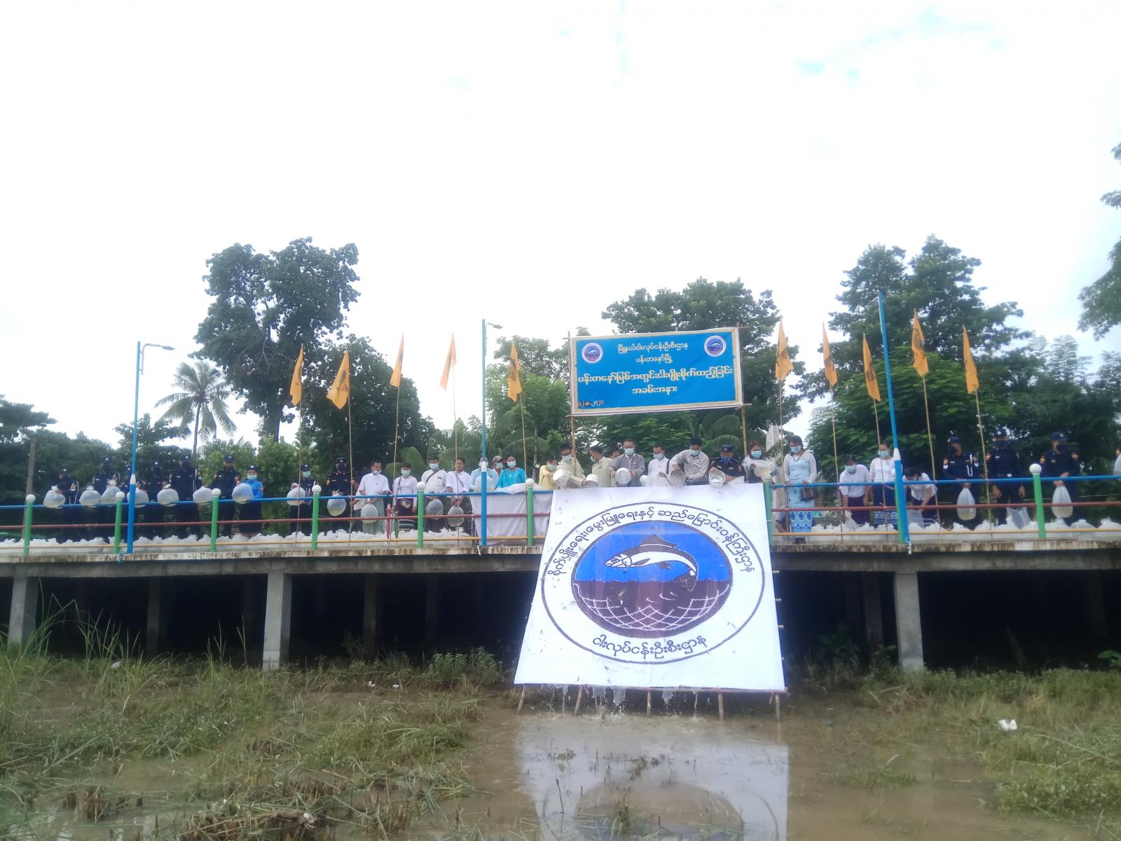 အဆိုပါ အခမ်းအနားသို့ တိုင်းဒေသကြီး လွှတ်တော်ကိုယ်စားလှယ် ဦးစန်းမောင်၊ မြို့နယ် အုပ်ချုပ်ရေးမှူး ဦးရဲမင်းအောင်၊ ခရိုင်ငါးလုပ်ငန်း ဦးစီးဌာနမှူး ဦးဇော်မင်းဦး၊ မြို့နယ် ငါးလုပ်ငန်း ဦးစီးဌာနမှူး ဦးလှအောင်သိန်း၊ မြို့နယ်အဆင့် ဌာနဆိုင်ရာများနှင့် လူမှုရေးအဖွဲ့အစည်းများ တက်ရောက်ကြပြီး ပန်းတနော်မြစ်အတွင်းသို့ ငါးမြစ်ချင်း ငါးသားပေါက် ကောင်ရေ (၁၀၀၀၀၀) ရွှေဝါငါးကြင်း ငါးသားပေါက်ကောင်ရေ (၃၀၀၀၀)၊ ငါးခုံးမ ငါးသားပေါက်ကောင်ရေ (၇၀၀၀၀) စုစုပေါင်း ငါးသားပေါက်ကောင်ရေ(၂၀၀၀၀၀)အား ပန်းတနော်မြစ်အတွင်းသို့ စိုက်ထည့်ခဲ့ ကြောင်း သိရသည်။