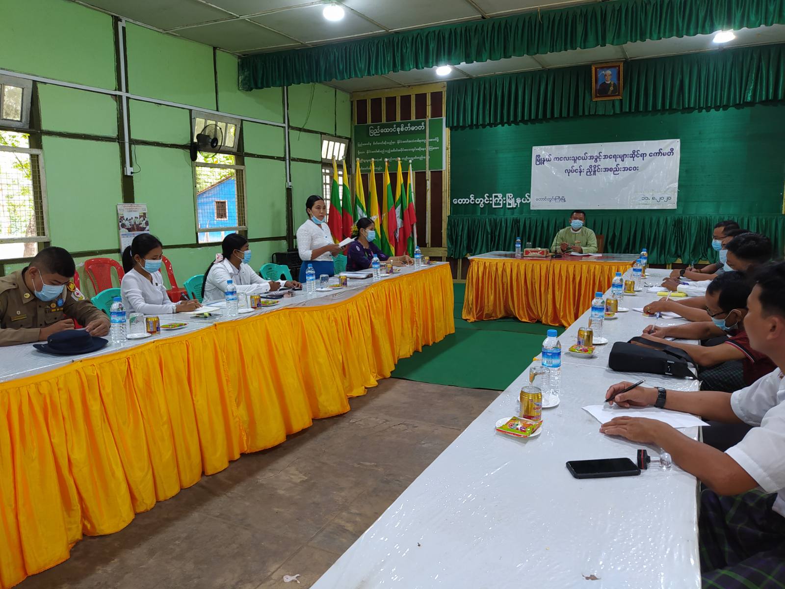 ရှေးဦးစွာ မြို့နယ်အုပ်ချုပ်ရေးမှူး ဦးအောင်မြင်က အဖွင့်အမှာစကားပြောကြားခဲ့ပြီး လူမှု၀န်ထမ်းဦးစီးဌာန မြို့မ မူကြိုကျောင်းအုပ်ဆရာမကြီး ဒေါ်အေးကလျာက ပြစ်မှုကျူးလွန်သော ကလေးငယ်များနှင့် ပြစ်မှုကျူးလွန်ခံရ သော ကလေးငယ်များအား ကလေးသူငယ်အခွင့်အရေးဆိုင်ရာ နည်းလမ်းများနှင့်အညီ ဆောင်ရွက်ပေးနေမှုများ၊ သက်ငယ်မုဒိမ်းကျူးလွန်ခံရသော ကလေးငယ်များအား ထောက်ပံ့စရိတ်ပေးအပ်မှု အခြေအနေများ၊ ဆေးဝါး ထောက်ပံ့ပေးမှုများ၊ လူမှုရေးရာဖြစ်ရပ်စီမံခန့်ခွဲမှု၊ နှစ်သိမ့်ဆွေးနွေးမှုနှင့် မြို့နယ် ပြန်ကြားရေးနှင့်ပြည်သူ့ ဆက်ဆံရေးဦးစီးဌာနနှင့်ပူးပေါင်း၍ ပြည်သူ့စကားဝိုင်းများ ဆောင်ရွက်ခဲ့မှုများ၊ ကိုဗစ်-၁၉ ကာလ ကိုယ်၀န် ဆောင်မိခင်များအား ငွေဗိုက် အပလီကေးရှင်းမှတဆင့် ထောက်ပံ့ငွေ ၃၀၀၀၀ ကျပ် ပေးအပ်မည့် အစီအစဉ်များ အား ရှင်းလင်းဆွေးနွေးခဲ့သည်။