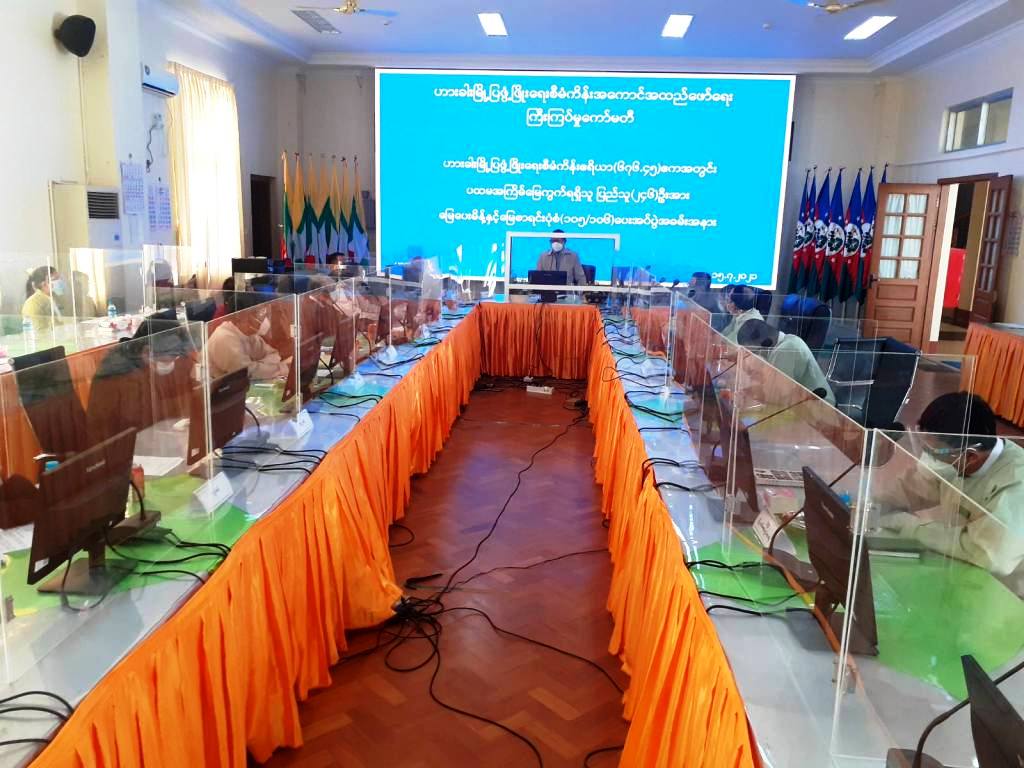 ချင်းပြည်နယ်၊ ဟားခါးမြို့ မြို့ပြဖွံ့ဖြိုးရေးစီမံကိန်းဧရိယာ (၆၇၆.၄၅)ဧကအတွင်း မဲနှိုက်စနစ်ဖြင့် ပထမအကြိမ် မြေကွက်ရရှိသူ ပြည်သူ(၂၄၆)ဦးအား မြေပေးမိန့်နှင့် မြေစာရင်းပုံစံ (၁၀၅/၁၀၆) ပေးအပ်ပွဲ အခမ်းအနားကို ယနေ့နံနက် ၉ နာရီခွဲက ချင်းပြည်နယ် စီမံအုပ်ချုပ်ရေး ကောင်စီရုံး အစည်းအဝေး ခန်းမ၌ပြုလုပ်ရာ ဟားခါးမြို့ပြဖွံ့ဖြိုးရေး စီမံကိန်း အကောင်အထည်ဖော်ရေး ကြီးကြပ်မှုကော်မတီဥက္ကဋ္ဌ၊ ချင်းပြည်နယ် စီမံအုပ်ချုပ်ရေး ကောင်စီဥက္ကဋ္ဌ ဦးငွန်ဆန်းအောင် တက်ရောက် အဖွင့်အမှာစကား ပြောကြားသည်။