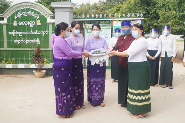 ညောင်ဦးခရိုင် မိခင်နှင့်ကလေးစောင့်ရှောက်မှုကြီးကြပ်ရေးအဖွဲ့ဥက္ကဋ္ဌ ဒေါ်နန်းဆိုင်စိန်ဦးဆောင်သည့် အဖွဲ့ဝင်များသည်၊ ကျောက်ပန်းတောင်းမြို့နယ် မိခင်နှင့်ကလေးစောင့်ရှောက်ရေးအသင်းဥက္ကဋ္ဌ ဒေါ်တင်ထွေးရီနှင့်အဖွဲ့ဝင်များလိုက်ပါလျက် ကျောက်ပန်းတောင်းမြို့ အမှတ်(၁) အခြေခံပညာအထက်တန်းကျောင်းရှိ ကျောင်းသားကျောင်းသူ (၆၀၀) ကျော်အတွက် ပြန်လည်လျှောက်ဖွတ်အသုံးပြုနိုင်သည့် အဝတ်နှာခေါင်းစည်း (၆၀၂) ခု၊ လေးရွာ အ.ထ.ကအတွက် အဝတ်နှာခေါင်းစည်း (၉၄) ခု၊ မြို့ရှေ့ အ.ထ.က အတွက် အဝတ်နှာခေါင်းစည်း (၃၀၈) ခုနှင့် အမှတ် (၂) အ.ထ.က အတွက် အဝတ်နှာခေါင်းစည်း (၅၃၃) ခုတို့ကို မြို့နယ်ပညာရေးမှူး ဒေါ်တင်တင်အေးနှင့် သက်ဆိုင်ရာကျောင်းအုပ်ဆရာမကြီးများထံပေးအပ်ခဲ့၍ ကျောင်းသား၊ ကျောင်းသူများထံ ဝေငှခဲ့ကြပြီး၊ ကျောက်ပန်းတောင်းမြို့နယ် ပြည်သူ့ဆေးရုံတွင် အသုံးပြုရန်အတွက် PPE ဝတ်စုံ (၅၀) ကို ညောင်ဦးခရိုင် မိခင်နှင့်ကလေးစောင့်ရှောက်မှုကြီးကြပ်ရေးအဖွဲ့ဥက္ကဋ္ဌ ဒေါ်နနးဆိုင်စိန်နှင့် မြို့နယ်မိခင်နှင့် ကလေး စောင့်ရှောက်ရေးအသင်းဥက္ကဋ္ဌ ဒေါ်တင်ထွေးရီတို့က မြို့နယ်ဆရာဝန်ကြီးကိုယ်စား မြို့နယ်ကျန်းမာရေးမှူး (၁) ဦးလှဟံထံ ပေးအပ်လှူဒါန်းခဲ့ကြောင်း သိရသည်။