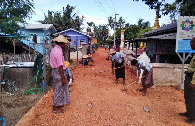 Cash for Work စီမံကိန်းအရ စီမံကိန်းလုပ်ငန်းများ အကောင်အထည်ဖော်ဆောင်ရာတွင် ကျေးလက်နေပြည်သူများ ဝင်ငွေရရှိပြီး မိသားစုများ အဆင်ပြေစေရေးနှင့် ကျေးရွာဖွံ့ဖြိုးရေးအတွက် ကျေးရွာနေပြည်သူများ၏လုပ်အားဖြင့် ရွာတွင်းလမ်းများ အဆင့်မြှင့်တင်ခြင်း၊ လမ်းဘေး ရေနှုတ်မြောင်းများ အသစ်တူးဖော်ခြင်း၊ အဟောင်းများပြုပြင်၍ ရေစီးရေလာကောင်းမွန်အောင် ဆောင်ရွက်ခြင်း၊ စိုက်ပျိုးရေယူမြောင်းများအား တူဖော်ခြင်းနှင့်ကျေးရွာ သုဿန်မြေနေရာများသန့်ရှင်းခြင်း စသည့်လုပ်ငန်းများ အကောင်အထည်ဖော်ဆောင်ရွက်ရကြောင်း သိရသည်။