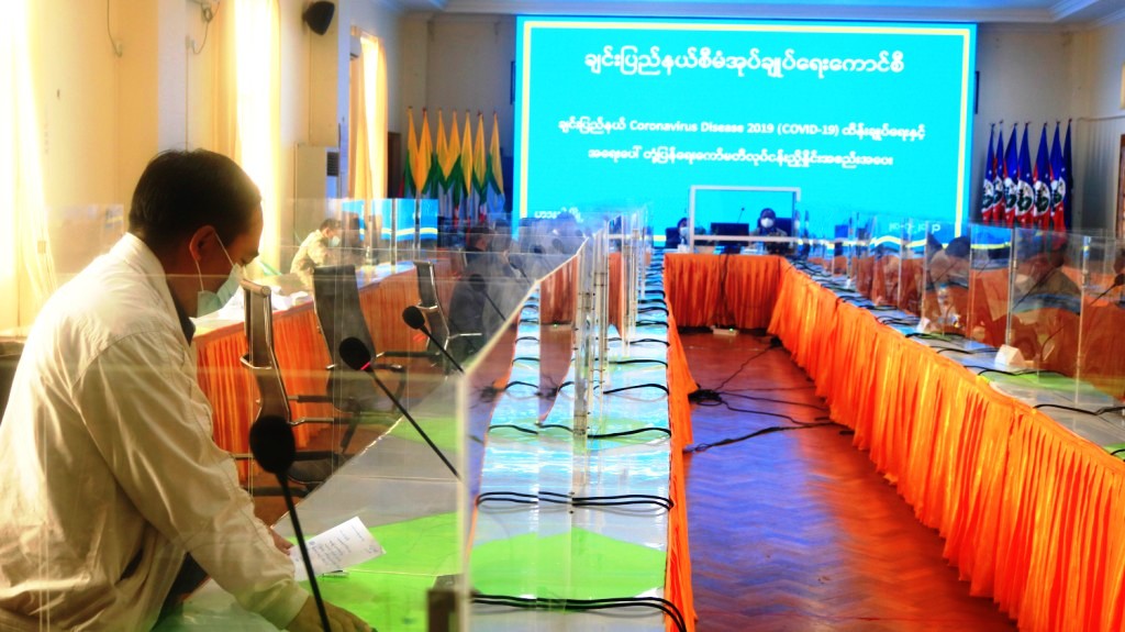 အစည်းအဝေးတွင် တက်ရောက်လာကြသည့် ဌာနဆိုင်ရာတာဝန်ရှိသူများက ကိုဗစ်-၁၉ ရောဂါ ကူးစက်မှု၊ သေဆုံးမှုနှင့် ကာကွယ်ထိန်း ကုသရေးလုပ်ငန်းများဆောင်ရွက်မှု အခြေအနေများ၊ ကိုဗစ်-၁၉ ကာကွယ်ဆေးထိုးနှံရေးအတွက် ဆောင်ရွက်ပြီးစီးမှု အခြေအနေများကို ရှင်းလင်းတင်ပြကြရာ တင်ပြချက် များအပေါ် ပြည်နယ်စီမံအုပ်ချုပ်ရေးကောင်စီအတွင်းရေးမှူး ဦးမောင်မောင်ဆန်းနှင့် ပြည်နယ်စီမံအုပ်ချုပ် ရေးကောင်စီဝင်များက ဖြည့်စွက်ဆွေးနွေးကြသည်။