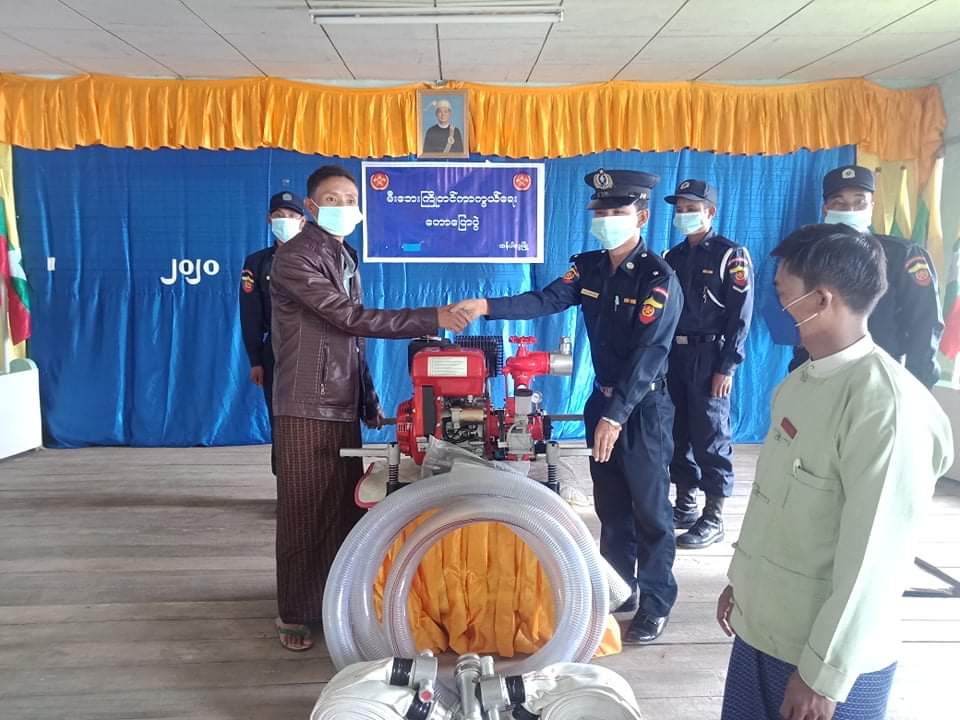 ထို့နောက် လက်ထောက်မီးသတ်ဦးစီးမှူး ဦးအောင်မျိုးဝင်းက မီးဘေးလုံခြုံရေး၊ ကြိုတင်ကာကွယ်ရေး လုပ်ငန်းများ ထိရောက်အကောင်အထည်ဖော် ဆောင်ရွက်နိုင်ရေးအတွက် ထောက်ပံ့ပေးအပ်ခြင်း ဖြစ်ကြောင်းနှင့် မီးဘေးကြိုတင်ကာကွယ်ရေး၊ မီးဘေးလုံခြုံရေး၊ မီးဘေးသတိမူရေး ကြပ်မတ် ဆောင်ရွက်နိုင်ရေးအတွက် အသိပညာပေးဟောပြောခဲ့ကြောင်း သိရသည်။