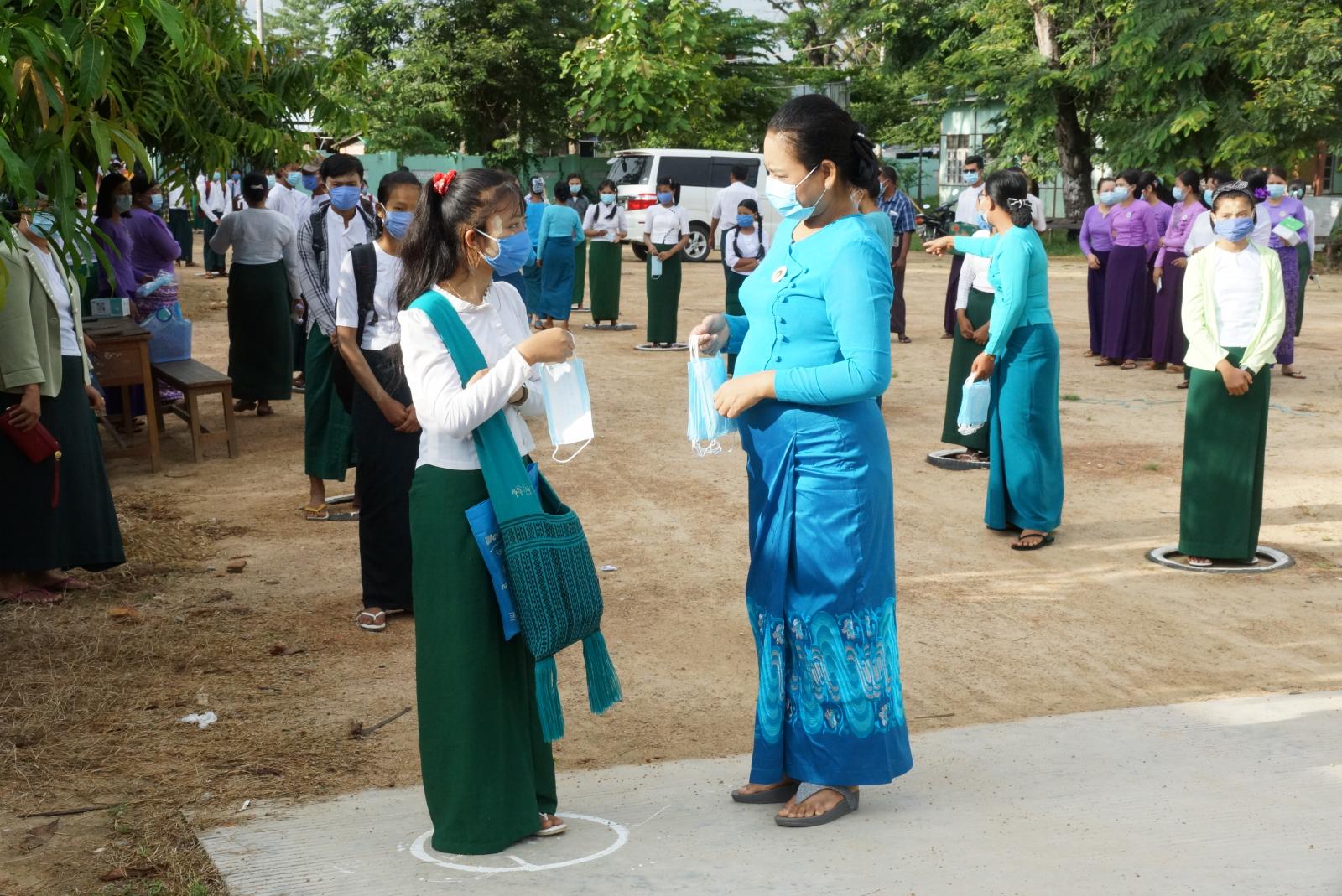 ပြည်ထောင်စုနယ်မြေ၊ နေပြည်တော်အမျိုးသမီးရေးရာအဖွဲ့မှ ဦးဆောင်ကာ ကျောင်းသား/ ကျောင်းသူ များ အား နှာခေါင်းစည်း၊ လက်သန့်ဆေးရည်နှင့် လက်ဆေးဆပ်ပြာများကို ယနေ့နံနက်ပိုင်းက ဇေယျာသီရိမြို့နယ်၊ ကျောက်ချက်ကျေးရွာ၊ အခြေခံပညာအထက်တန်းကျောင်းတွင် အခမဲ့ဖြန့်ဝေခဲ့သည်။