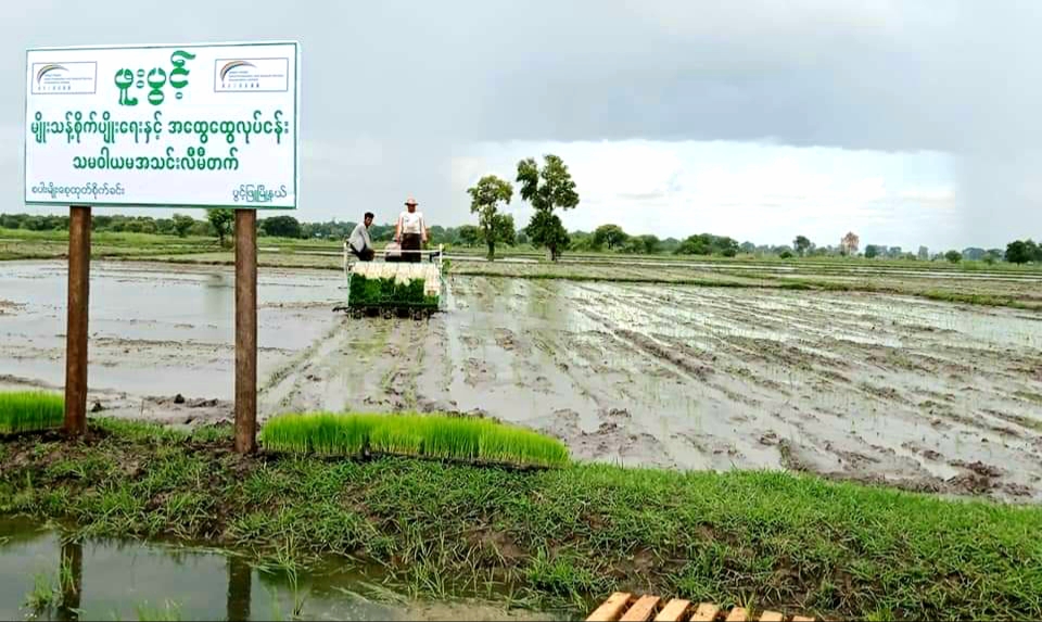 မကွေးတိုင်းဒေသကြီး ၊ ပွင့်ဖြူမြို့နယ်စက်မှုလယ်ယာဦးစီးဌာနမှ မိုးစပါးစိုက်ပျိုးရာသီတွင် မြို့နယ်အတွင်းရှိ ဒေသခံတောင်သူများ သီးနှံအထွက်နှုန်း တိုးတက်ကောင်းမွန်စေရန်နှင့် လုပ်သားရှားပါးမှုအခက်အခဲများ ပြေလျော့ သက်သာစေရေးအတွက် ကောက်စိုက်စက်ဖြင့် စပါးစိုက်ပျိုးခြင်းဝန်ဆောင်မှုလုပ်ငန်းကို ယမန်နေ့ က ပွင့်ဖြူမြို့နယ် ကံသာကြီးကျေးရွာ ကွင်းအမှတ်(၉၅၀) တောင်သူ ဦးအေးမြတ်မင်း၏ မိုးစပါးစိုက် လယ်မြေ(၃)ဧကတွင် ကောက်စိုက်စက်ဖြင့် ဧရာပဒေသာမျိုးစပါးများ စိုက်ပျိုးဆောင်ရွက်ပေးခဲ့ ကြောင်း သိရသည်။