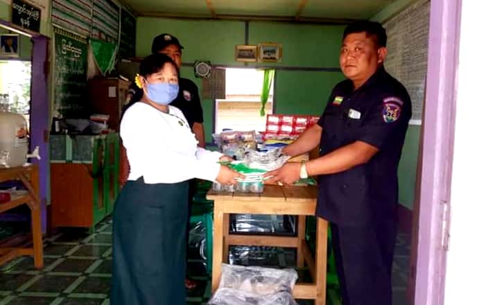 အဆိုပါ ကျန်းမာရေးသုံးပစ္စည်းများ လှူဒါန်းပေးအပ်ရာတွင် မနန်းစံပယ်နှင့် အလှူရှင်များကိုယ်စား မေတ္တာစမ်းရေအသင်းမှ နားဆိုင်းကျေးရွာ အခြေခံပညာအထက်တန်းကျောင်းခွဲနှင့် လုပ်လေကျေးရွာ အခြေခံ ပညာ မူလတန်းကျောင်းသို့ Hand-Gel (500ml)ဗူး (၁၅)ဗူး၊ နှာခေါင်းစည်း (၆၀၀)ခု၊ လက်ဆေးဆပ်ပြာခဲ (၁၄၄)ခဲ၊ PPE ဝတ်စုံပြည့် (၅)စုံ၊ လက်အိတ် (၃၀၀၀) ခုနှင့် မုန့်မျိုးစုံ (၁၀၀)ထုပ်အား နားဆိုင်းကျေးရွာ အခြေခံပညာအထက်တန်းကျောင်းခွဲ ကျောင်းအုပ် ဒေါ်အိရွှေစင်ဦး လက်ဝယ်သို့ ဆက်လက် ပေးအပ် လှူဒါန်းခဲ့ကြောင်း သိရသည်။