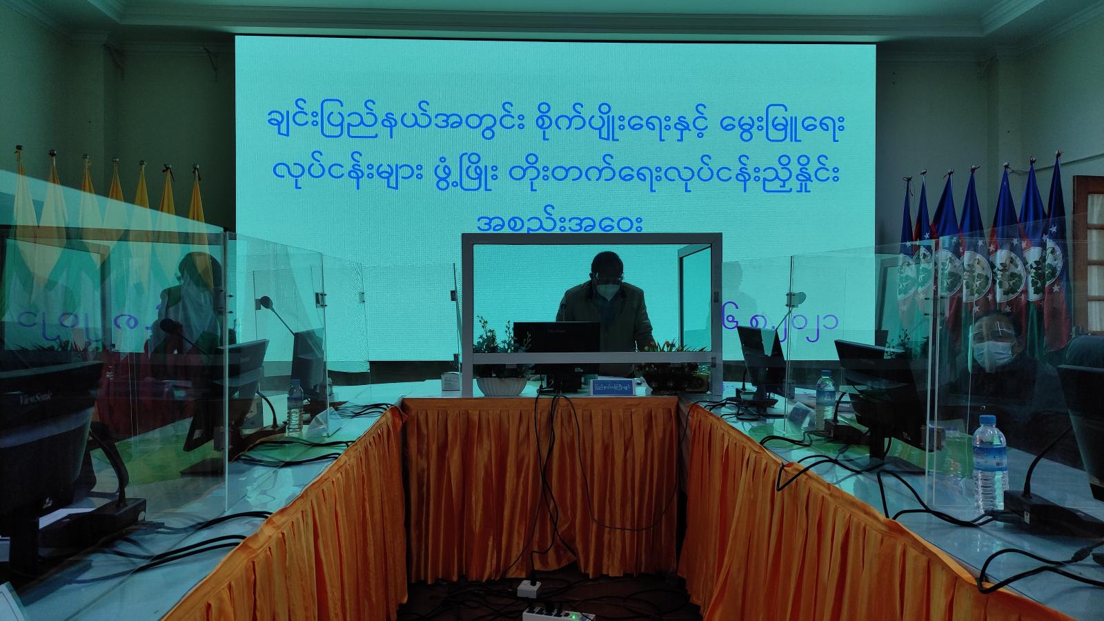 လုပ်ငန်းညှိနှိုင်း အစည်းအဝေးတွင် ပြည်နယ်ဝန်ကြီးချုပ်က အဖွင့်အမှာစကား ပြောကြားပြီးနောက် အစည်းအဝေး တက်ရောက်လာကြသော စိုက်ပျိုးရေးဦးစီးဌာန၊ မွေးမြူရေးနှင့် ကုသရေး ဦးစီးဌာန၊ ငါးလုပ်ငန်းဦးစီးဌာန၊ ဆည်မြောင်းနှင့် ရေအသုံးချမှု စီမံခန့်ခွဲရေး ဦးစီးဌာန၊ ကုန်းမြင့်ဒေသ လယ်ယာမြေဖော်ထုတ်ရေး စီမံကိန်းရုံးနှင့် စက်မှုလယ်ယာ ဦးစီးဌာနတို့မှ ပြည်နယ်ဦးစီးမှူးများက မိမိတို့ကဏ္ဍအလိုက် ဆောင်ရွက်ပြီး၊ ဆောင်ရွက်ဆဲ၊ ဆက်လက်ဆောင်ရွက်ရမည့် အစီအမံများနှင့် ကြုံတွေ့ရသည့် အခက်အခဲ များကို ရှင်းလင်းတင်ပြကြရာ တင်ပြချက်များအပေါ် ပြည်နယ်အစိုးရ အဖွဲ့အတွင်းရေးမှူး ဦးမောင်မောင်ဆန်း၊ ပြည်နယ်သယံဇာတရေးရာဝန်ကြီး ဦးကျော်ငြိမ်းနှင့် ပြည်နယ် ဝန်ကြီးချုပ်တို့က လိုအပ်သည်များ ပေါင်းစပ်ညှိနှိုင်းဖြေရှင်းပေးခဲ့ပြီး ပြည်နယ်ဝန်ကြီးချုပ်က နိဂုံးချုပ် အမှာစကား ပြောကြားခဲ့ကြောင်း သိရသည်။