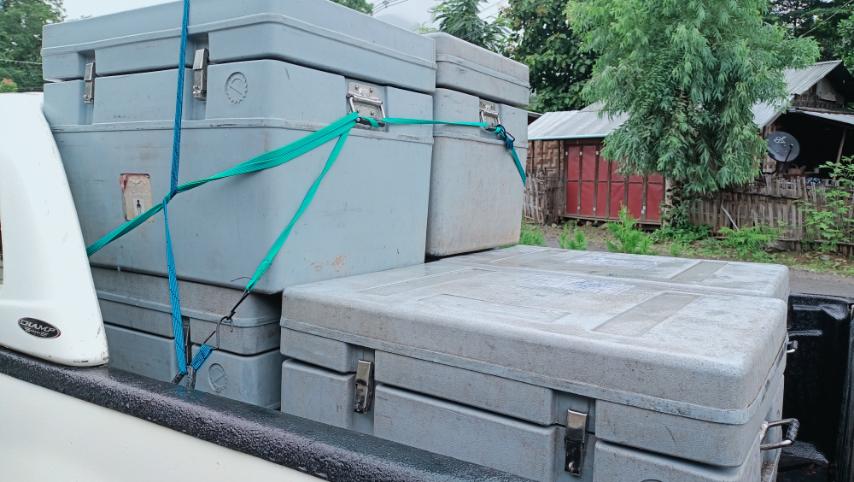 သို့ဖြစ်၍ Sinopharm ဆေးကို တီးတိန်မြို့နယ်အတွက် (၁၄၂၀) Vail (4BOX)နှင့် တွန်းဇန်မြို့နယ်အတွက် (၅၂၀) Vail (2BOX) တို့ဖြစ်ကြောင်းသိရှိရပြီး ခိုင်ကမ်းမြို့မှ ဆေးပစ္စည်းများ သယ်ဆောင်သည့် မော်တော်ယာဉ်များ နေ့လယ် ၁ နာရီခွဲအချိန်က တီးတိန်မြို့သို့ ထွက်ခွာသွားခဲ့ကြကြောင်း သိရှိရသည်။