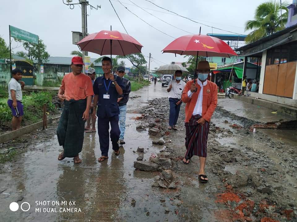 ရန်ကုန်တိုင်းဒေသကြီး၊ မြောက်ပိုင်းခရိုင်၊ လှိုင်သာယာ(အနောက်ပိုင်း) မြို့နယ် အမှတ်(၁၉)ရပ်ကွက် သုမင်္ဂလလမ်း၊ အမှတ်(၁၁)ရပ်ကွက်ရှိ ပိတောက်လမ်းများတွင် မိုးတွင်းကာလ သွာလာရေး အဆင်ပြေစေရန်နှင့် လမ်းများပေါ်တွင် ရေကြီးရေလျှံမှု မဖြစ်ပေါ်စေရန်၊ လမ်းကွန်ကရစ် ခင်း ဆောင်ရွက်ရန်၊ မြေသားပြုပြင်ခြင်းလုပ်ငန်း ဆောင်ရွက်နေမှုနှင့် ကွန်ကရစ်ခင်း ဆောင်ရွက်ပြီးစီးမှုအခြေ အနေများအား ယမန်နေ့ မွန်းလွဲပိုင်းက လှိုင်သာယာမြို့နယ် အမှတ်(၂)တိုင်း ဒေသကြီးလွှတ်တော်ကိုယ်စားလှယ် ဦးမြတ်မင်းသူ၊ မြို့နယ်ရပ်/ကျေး အလုပ်အမှုဆောင် များနှင့် သက်ဆိုင်ရာတာဝန် ရှိသူများက ရေရှည်ခိုင်ခံ့မှုရှိစေရေး ကွင်းဆင်းကြည့်ရှုခဲ့ကြသည်။