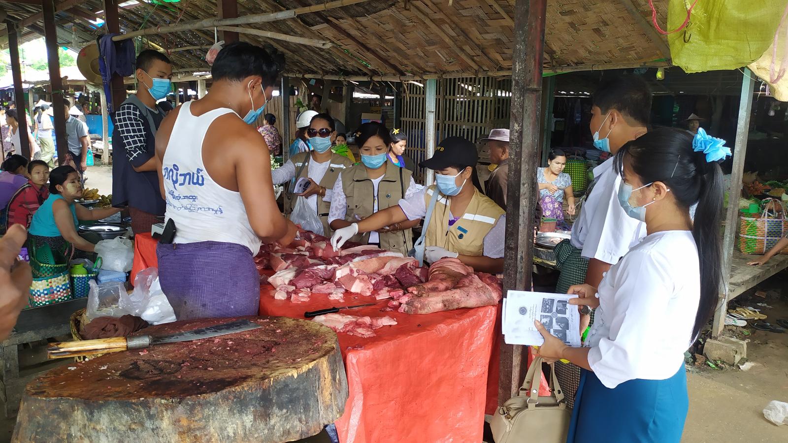 ပဲခူးတိုင်းဒေသကြီး၊ သာယာဝတီခရိုင်၊ မိုးညိုမြို့၊ စည်ပင်သာယာစျေးအတွင်း အများပြည်သူ ဘေးကင်းသန့်ရှင်းသော အသားများ စားသုံးနိုင်ရေး စစ်ဆေးခြင်းနှင့် အသိပညာပေး လုပ်ငန်းများကို ယနေ့နံနက်(၈) နာရီက ဆောင်ရွက်ခဲ့သည်။