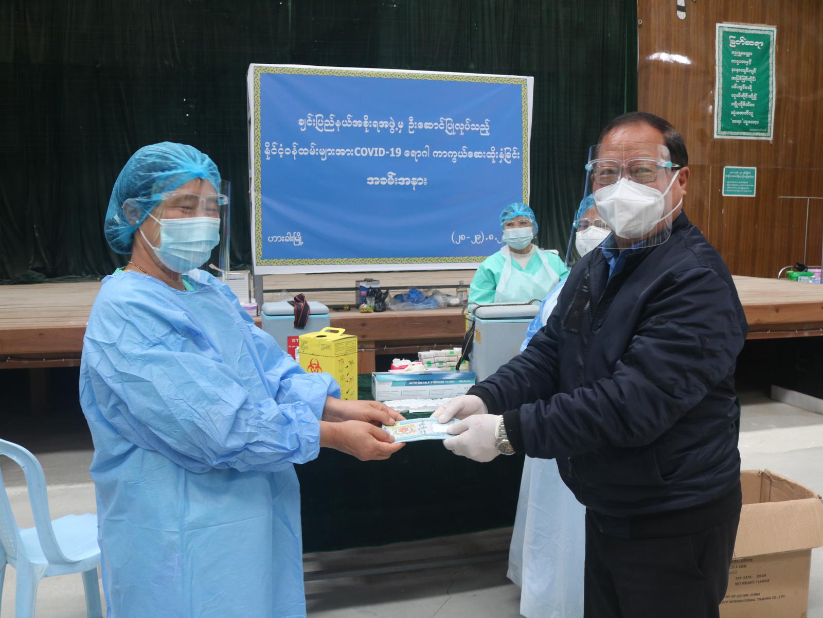 ကိုဗစ်−၁၉ ရောဂါကာကွယ်ဆေးထိုးနှံပေးနေမှုအခြေအနေကို ချင်းပြည်နယ် ကိုဗစ်−၁၉ ထိန်းချုပ်ရေးနှင့် အရေးပေါ်တုံ့ပြန်ရေးကော်မတီဥက္ကဋ္ဌ၊ ပြည်နယ်ဝန်ကြီးချုပ် ဦးငွန်ဆန်းအောင်နှင့် ဌာနဆိုင်ရာတာဝန်ရှိသူ များက ကြည့်ရှု့အားပေးကြပြီး ပြည်နယ်ဝန်ကြီးချုပ်က ကာကွယ်ဆေးထိုးနှံပေးသည့် အဖွဲ့အား ထောက်ပံ့ငွေများ ပေးအပ်ခဲ့သည်။