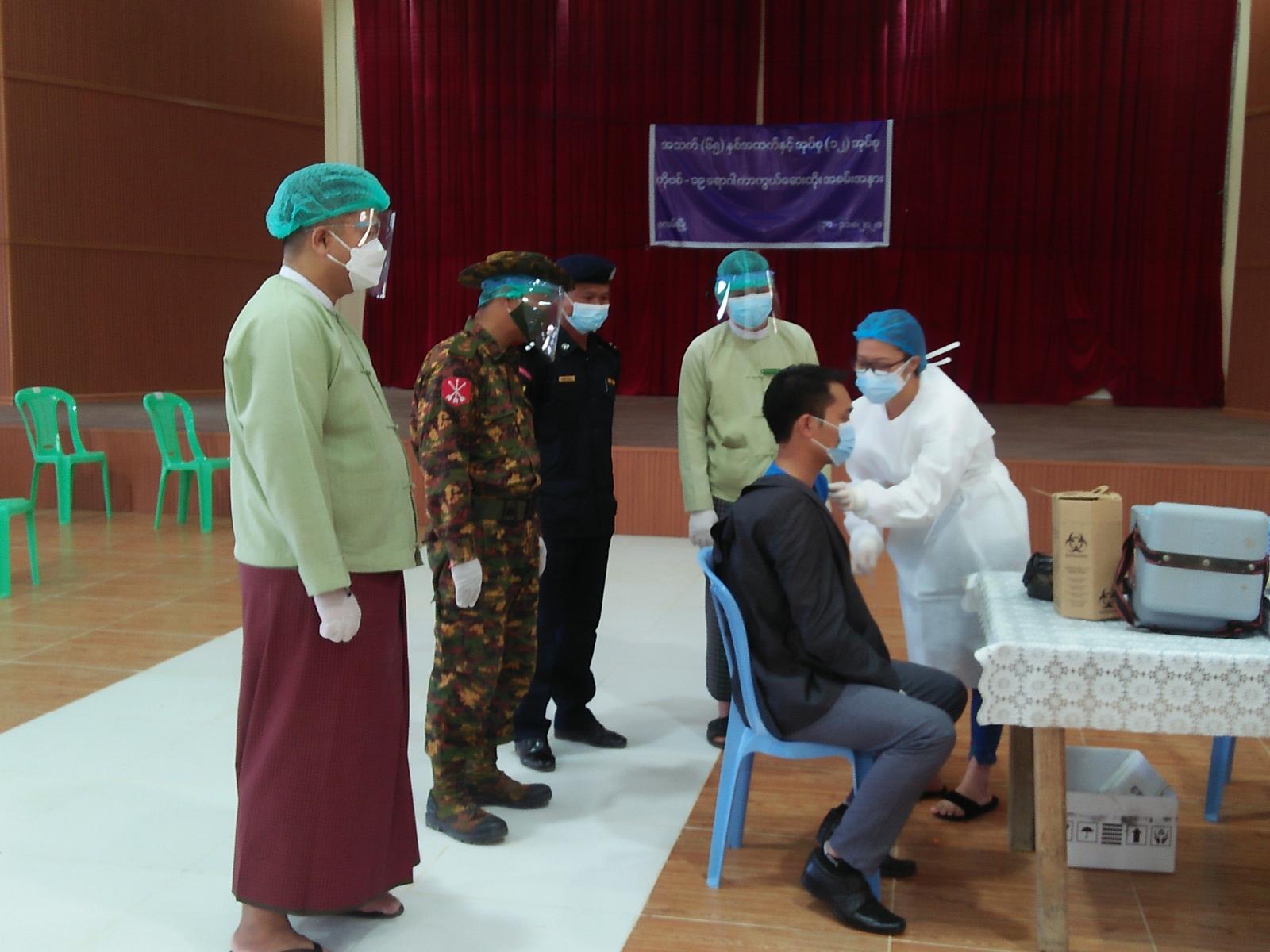ကိုဗစ်-၁၉ရောဂါ ကာကွယ်ဆေး (Vero Cell) ထိုးနှံပေးရာတွင် ကာကွယ်ဆေး လာရောက်ထိုးနှံသူများကို ကာကွယ်ဆေး မထိုးနှံပေးမီ ကိုယ်အပူချိန်တိုင်းတာခြင်း၊ သွေးပေါင်ချိန် တိုင်းတာပေးခြင်း၊ ဆေးထိုးမှတ်တမ်းများ ရေးသွင်းခြင်းများပြုလုပ်ပြီး ကိုဗစ်-၁၉ ရောဂါကာကွယ်ဆေး (Vero Cell) ကျား(၃၅)ဦးနှင့် မ(၁၉)ဦးတို့ကို ထိုးနှံပေးခဲ့ကြသည်။