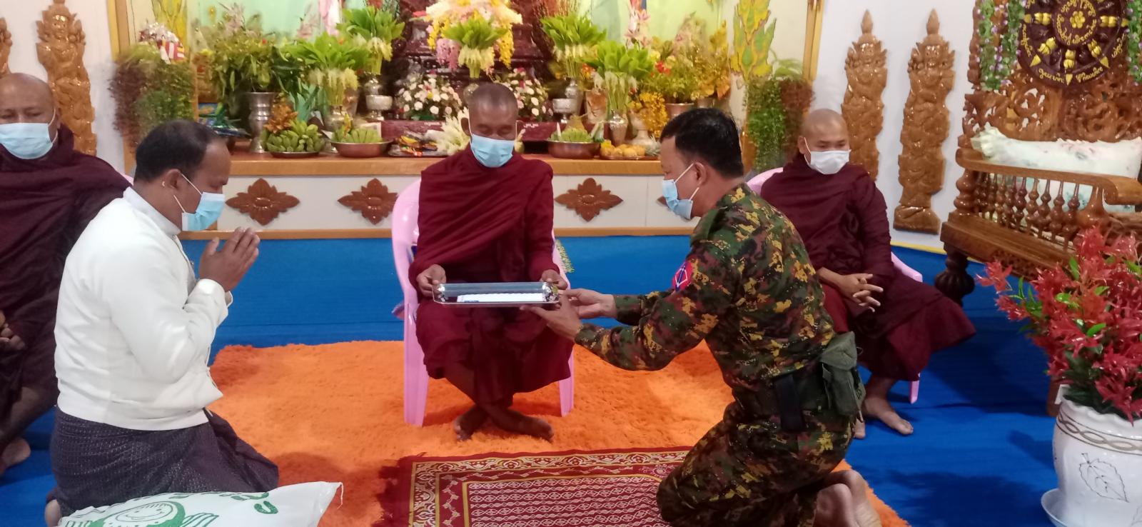 အခမ်းအနားတွင် မင်းတပ်မြို့နယ် သံဃနာယကအဖွဲ့ ဥက္ကဌ၊ ဗဟိုသာသနာပြုကျောင်းတိုက်၏ ဦးစီးပဓါန နာယက ဆရာတော် (မဟာသဒ္ဓမဇောတိကဓဇ) ဘဒ္ဒန္တခေမိန္ဒထံမှ ငါးပါးသီလ ခံယူ ဆောက်တည် ခဲ့ကြသည်။ ဆက်လက်၍ ချင်းပြည်နယ်အစိုးရအဖွဲ့မှ မင်းတပ်မြို့နယ် ကျောင်းတိုက် (၇၄)ကျောင်းတွင် သီတင်းသုံးလျက်ရှိသည့် သံဃာ(၁၄၅)ပါး နှင့် သီလရှင်(၇)ပါးအတွက် တစ်ပါးလျှင် ကျပ်(၁၈၀၀၀) နှုန်းဖြင့် လည်းကောင်း မင်းတပ်မြို့ပေါ်ရှိ ကျောင်းတိုက်အသီးသီးတွင် သီတင်း သုံးလျက်ရှိသည် သံဃာတော်များ ဝါတွင်းကာလအတွင်း ဆွမ်းများ ပြည့်စုံမှု ရှိစေရေးအတွက် ဆန်(၁၅)အိတ်၊ ဆီ(၁၅)ပိဿာ၊ ဆား(၁၅)ပိဿာ၊ ကြက်သွန်နီ(၁၅)ပိဿာ Mask(၁၅)ဗူးနှင့် Hand Gel(၁၅)ဗူး တို့ကို ချင်းပြည်နယ်အစိုးရအဖွဲ့မှ ကိုယ်စား စစ်နယ်မြေမှူး ဗိုလ်မှူးကြီး အောင်မြတ်ထွန်းနှင့် ခရိုင်/မြို့နယ် စီမံအုပ်ချုပ်ရေးအဖွဲ့တို့က ဆက်ကပ်လှူဒါန်းပေးခဲ့ကြသည်။ ဆက်လက်၍ ခရစ်ယာန် ဘာသာရေး ကျောင်းများရှိ သင်းအုပ်ဆရာတော် (၂၂၀)ပါးအတွက် တစ်ပါးလျှင်(၁၈၀၀၀/-) နှုန်းဖြင့် ချင်းပြည်နယ် အစိုးရအဖွဲ့မှ ကိုယ်စား စစ်နယ်မြေမှူး ဗိုလ်မှူးကြီး အောင်မြတ်ထွန်းနှင့် ခရိုင်/မြို့နယ် စီမံအုပ်ချုပ်ရေး အဖွဲ့တို့က သွားရောက်ဆက်ကပ်လှူဒါန်းပေးခဲ့ကြသည်။ ချင်းပြည်နယ်အစိုးရအဖွဲ့မှ မင်းတပ် မြို့နယ်တွင် သံဃာတော်(၁၄၅)ပါးနှင့် သီလရှင်း(၇)ပါး၊ ဘာသာရေးသင်းအုပ်ဆရာ(၂၂၀)ပါးအတွက် လှူဒါန်း ငွေကျပ်(၆၆၉၆၀၀၀/-)၊ ဆန်(၁၅)အိတ်၊ ဆီ(၁၅)ပိဿာ၊ ဆား(၁၅)ပိဿာ၊ ကြက်သွန်နီ (၁၅)ပိဿာ Mask(၁၅)ဗူးနှင့် Hand Gel(၁၅)ဗူးဖြစ်ကြောင်း သိရသည်။