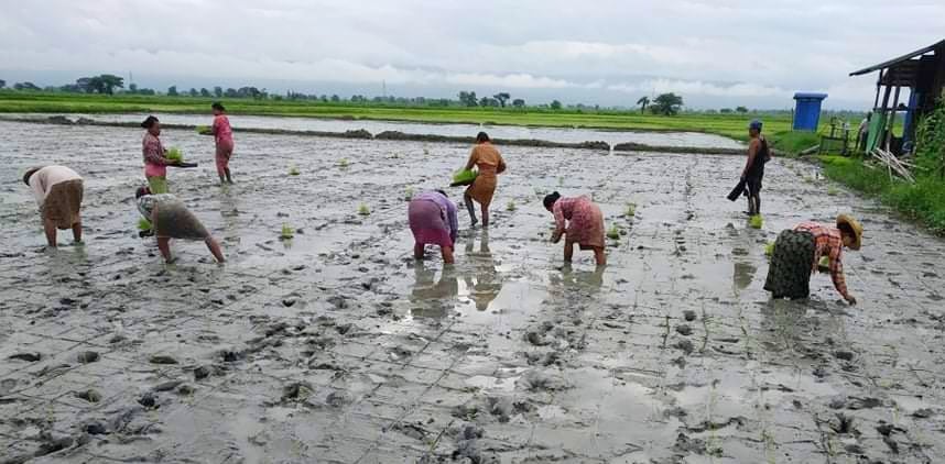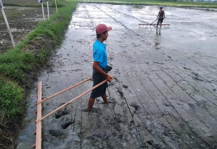 စစ်ကိုင်းတိုင်းဒေသကြီး ကလေးမြို့နယ် သာစည်ကျေးရွာအုပ်စု ချင်းဆိုင်ကျေးရွာတွင် SRI စိုက်နည်းစနစ်ဖြင့် ဧရာမင်း မျိုးသန့်စပါး (Fs -RS) မျိုးအဆင့် စိုက်ပျိုးခြင်းကို ယနေ့နံနက် ၈ နာရီအချိန်က တောင်သူဦးမောင်တင့်၏ လယ်မြေ အတွင်းတွင်စိုက်ပျိုးကြသည်။