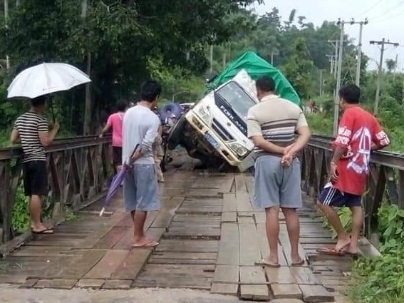 နမ့်ခမ်းမြို့ နှင့် ကချင်ပြည်နယ်၊ ဗန်းမော်မြို့တို့ ဆက်သွယ်သည့် ပြည်ထောင်စုလမ်းမပေါ်ရှိ နမ့်မချောင်းကူး ဘေလီတံတားပေါ်၌ ယမန်နေ့၊ နေ့လည်(၁၂)နာရီခွဲ အချိန်ခန့်က ကချင်ပြည်နယ်၊ မန့်ဝိန်းကြီးဈေးမှ နမ့်ခမ်းမြို့ဘက်သို့ မောင်းနှင်လာသော ဈေးပတ်ယာဉ်သည်တံတားပေါ်အရောက်တွင် မျက်နှာချင်းဆိုင်ဘက်မှ မောင်းနှင်လာသောမော်တော်ဆိုင်ကယ်အား လမ်းရှောင်ပေးရန် ဘေးသို့ကပ်မောင်းခဲ့ရာမှ မော်တော်ယာဉ်၏ နောက်ဘီး ကျွံကျသွားပြီး တံတားခင်း သစ်သားကြမ်းများ ကျိုးကျပျက်ဆီးခဲ့သည်။