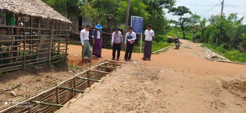 ကိုဗစ်-၁၉ ကာလအတွင်း ကျေးလက်နေပြည်သူများ မိသားစုဝင်ငွေ လျော့ပါးလာမှုနှင့် စားဝတ်နေရေး အခက်အခဲများကို ပြန်လည်ကုစား နိုင်ရန် စိုက်ပျိုးရေး၊ မွေးမြူရေးနှင့်ဆည်မြောင်းဝန်ကြီးဌာန၊ ကျေးလက်ဒေသဖွံ့ဖြိုးတိုးတက်ရေးဦးစီးဌာနမှ Cash for Work စီမံကိန်းဖြင့် ဆောင်ရွက်လျက်ရှိရာ စီမံကိန်းဝင် ကျေးရွာတစ်ရွာဖြစ်သော ထင်းပုံဆိပ်ကျေးရွာတွင် အရှည်(၁၅၀၀)ပေ၊ အနံ(၃)ပေ၊ အနက်(၂)ပေရှိသော ရေနုတ်မြောင်းတူးဖော်နေမှုအား ကွင်းဆင်းကြည့်ရှုစစ်ဆေးခဲ့ပြီး လိုအပ်သည်များ ကို ပေါင်းစပ်ညှိနှိုင်းပေးခဲ့ကြောင်း သိရသည်။ မြို့နယ် အတွင်း Cash for Work စီမံကိန်း ဆောင်ရွက်ရန် ကျေးရွာ(၈)ရွာ ရွေးချယ်ထားပြီး တစ်ရွာလျှင် စီမံကိန်းထောက်ပံ့ငွေသိန်း(၁၀၀) သတ်မှတ် ထားပြီး ကျေးရွာနေပြည်သူများကိုယ်တိုင် မိမိတို့ကျေးရွာ၏ လိုအပ်နေသော ဖွံ့ဖြိုးရေးလုပ်ငန်းများကို ကော်မတီ ဖွဲ့ရွေးချယ်စေ ပြီး လုပ်ငန်းဆောင်ရွက်ရာတွင် လုပ်အားခငွေ ချက်ချင်းပေးချေသည့်စနစ်ဖြင့် ဆောင်ရွက် နေခြင်းဖြစ်ကြောင်း မြို့နယ်ကျေးလက်ဒေသ ဖွံ့ဖြိုးတိုးတက်ရေးဦးစီးဌာန တာဝန်ရှိသူ တစ်ဦးထံက သိရ သည်။