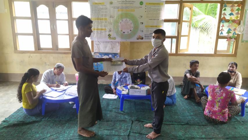ရှေးဦးစွာ မြို့နယ်ကျေးလက်ဒေသဖွံ့ဖြိုးတိုးတက်ရေးဦးစီးဌာနမှ ဦးစီးမှူး ဦးစိုးရယ်လွင်က ကိုဗစ်-၁၉ ကာလ စီးပွါးရေးကုစားမှုအစီအစဉ်အရ အကောင်အထည်ဖော်ဆောင်ရွက်ရန် လုပ်ငန်းလုပ်ကိုင်ကြမည့် အသင်းသားများအား ရန်ပုံငွေထုတ်ချေးပေးရခြင်း၏ရည်ရွယ်ချက်များအား ရှင်းလင်းပြောကြားပြီးနောက် အနောက်စုကျေးရွာမှ စိုက်ပျိုးရေးလုပ်ငန်းလုပ်ကိုင်သူ (၂၉) ဦး၊ မွေးမြူရေးလုပ်ငန်း (၁၉) ဦးနှင့် အရောင်းအဝယ်လုပ်ကိုင်သူ (၁၆) ဦး စသဖြင့် အသင်းသား (၆၀) ဦးအတွက် စုစုပေါင်းထုတ်ချေးပေးငွေ (၂၉၄) သိန်းကျပ်တိတိ ထုတ်ချေးပေးခဲ့ခြင်းဖြစ်ကြောင်းနှင့် ဆက်လက်ပြီး (၆) မိုင်ကျေးရွာ၊ မြေမအုံကျေးရွာနှင့်စတိန်သောင်ကျေးရွာများတွင်လည်း ၎င်းစီမံကိန်းရန်ပုံငွေများကို အသင်းသားများထံထုတ်ချေးပေးသွားမည်ဖြစ်ကြောင်း သိရသည်။