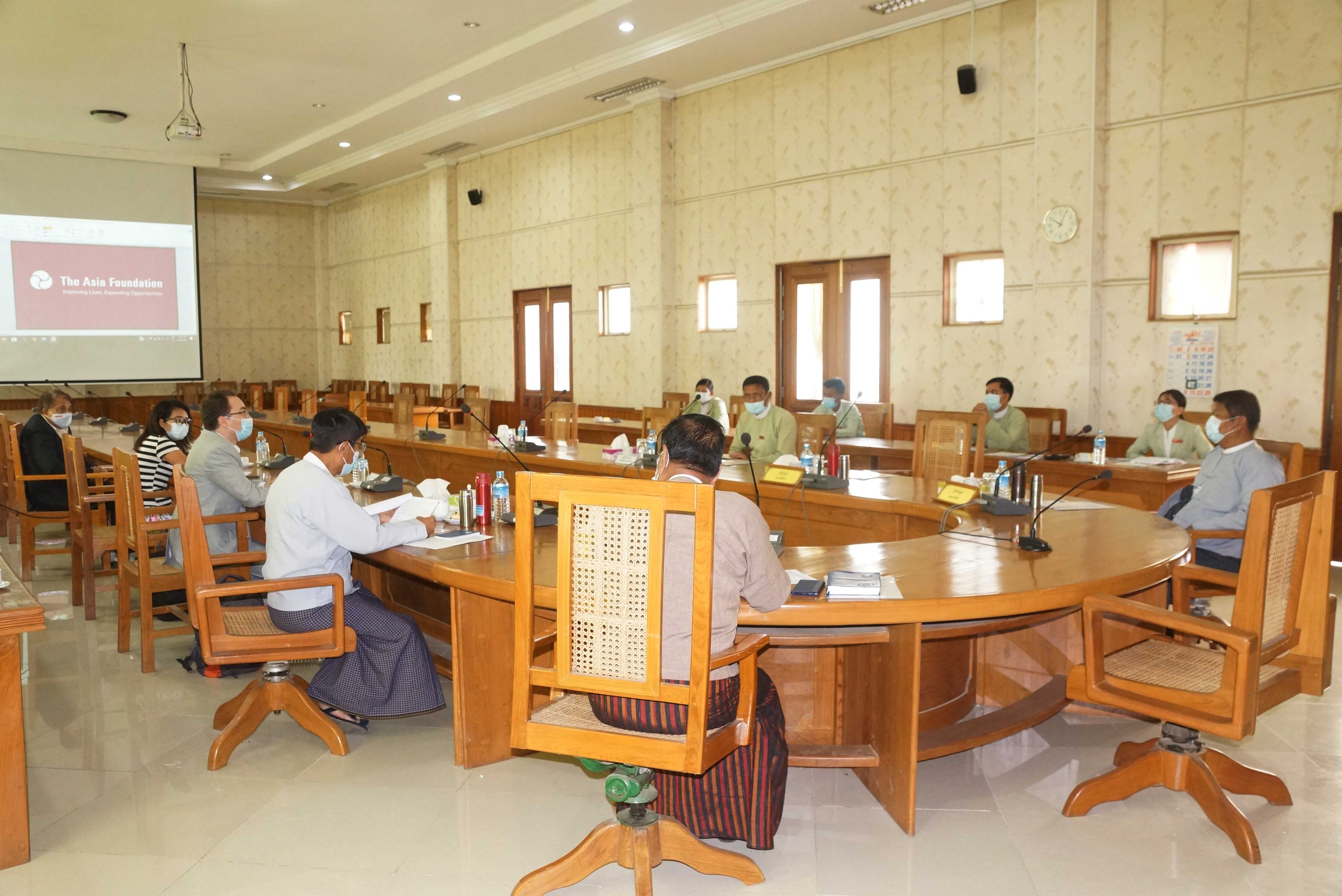 အာရှဖောင်ဒေးရှင်းမှ မြန်မာ့စီးပွားရေးဝန်းကျင်ညွှန်းကိန်း- ၂၀၂၀ ဒုတိယအကြိမ်မြောက် သုတေသန လေ့လာတွေ့ရှိချက်များနှင့်ပတ်သက်၍ တွေ့ဆုံဆွေးနွေးခြင်းကို ယနေ့နံနက် (၁၀)နာရီက နေပြည်တော်ကောင်စီရုံး အစည်းအဝေးခန်းမ၌ ကျင်းပသည်။