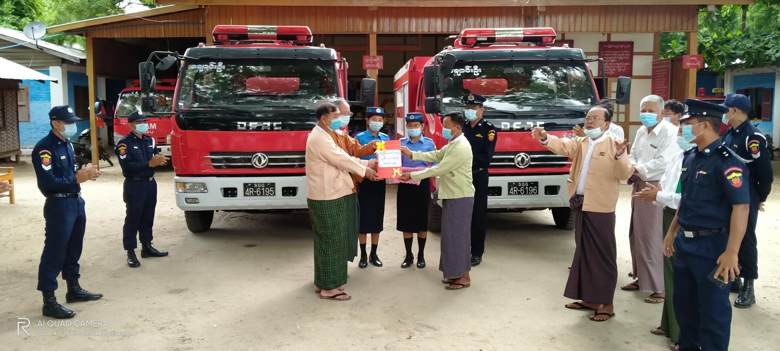 ယနေ့နံနက် ၉ နာရီအချိန်၌ ပြည်သူ့လွှတ်တော် ကိုယ်စားလှယ်ဦးမျိုး၊ တိုင်းဒေသကြီး လွှတ်တော် ကိုယ်စားလှယ် ဦးဝင်းမြင့်ခင်၊ ဦးကျော်ဆန်း၊ မြို့နယ်အုပ်ချုပ်ရေးမှူး ဦးအောင်ဘော်၊ မီးသတ်ဦးစီးအရာရှိ ဦးတင်အောင်မိုးနှင့် မြို့နယ် ရပ်မိရပ်ဖများက နတ်ရေကန် ကျေးရွာအုပ်ချုပ်ရေးမှူးဦးဖိုးဆန်း၊ ချောင်းမနားကျေးရွာ အုပ်ချုပ်ရေးမှူး ဦးနိုင်ဦးတို့ထံ မီးသတ်ကားများ လွှဲပြောင်းပေးအပ်ခဲ့သည်။