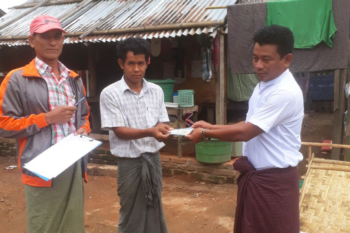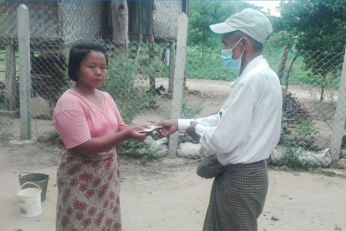 ထို့နောက် ရပ်ကွက် ကျေးရွာအုပ်ချုပ်ရေးမှူးများနှင့် တာဝန်ရှိသူတို့က အခြေခံလူတန်းစား အိမ်ထောင်စု များ ထံသို့ အိမ်တိုင်ရာရောက် သွားရောက်ထောက်ပံ့ပေးခဲ့ကြောင်းသိရသည်။
