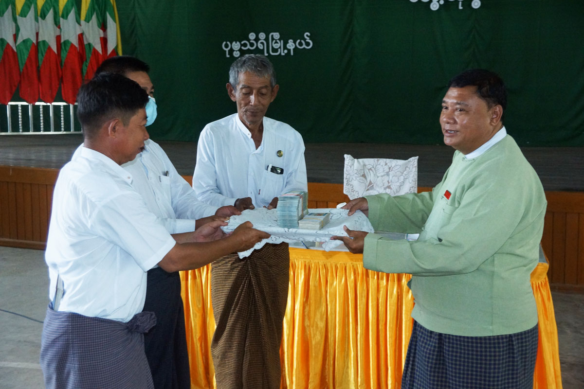 ဆက်လက်၍ မြို့နယ်အုပ်ချုပ်ရေးမှူးနှင့်တာဝန်ရှိသူတို့က ထောက်ပံ့ငွေပေးအပ်ရန် ကျန်ရှိသည့်အခြေခံ လူတန်းစား အိမ်ထောင်စု(၅၅၄၀)စုအတွက် တစ်အိမ်ထောင်လျှင် ထောက်ပံ့ငွေကျပ် ၂၀၀၀၀ နှုန်းဖြင့် ထောက်ပံ့ငွေစုစုပေါင်း ၁၁၀၈၀၀၀၀၀ ကျပ်ကို သက်ဆိုင်ရာရပ်ကွက် ကျေးရွာ အုပ်ချုပ်ရေးမှူးများထံ လွှဲပြောင်းပေးအပ်ခဲ့သည်။