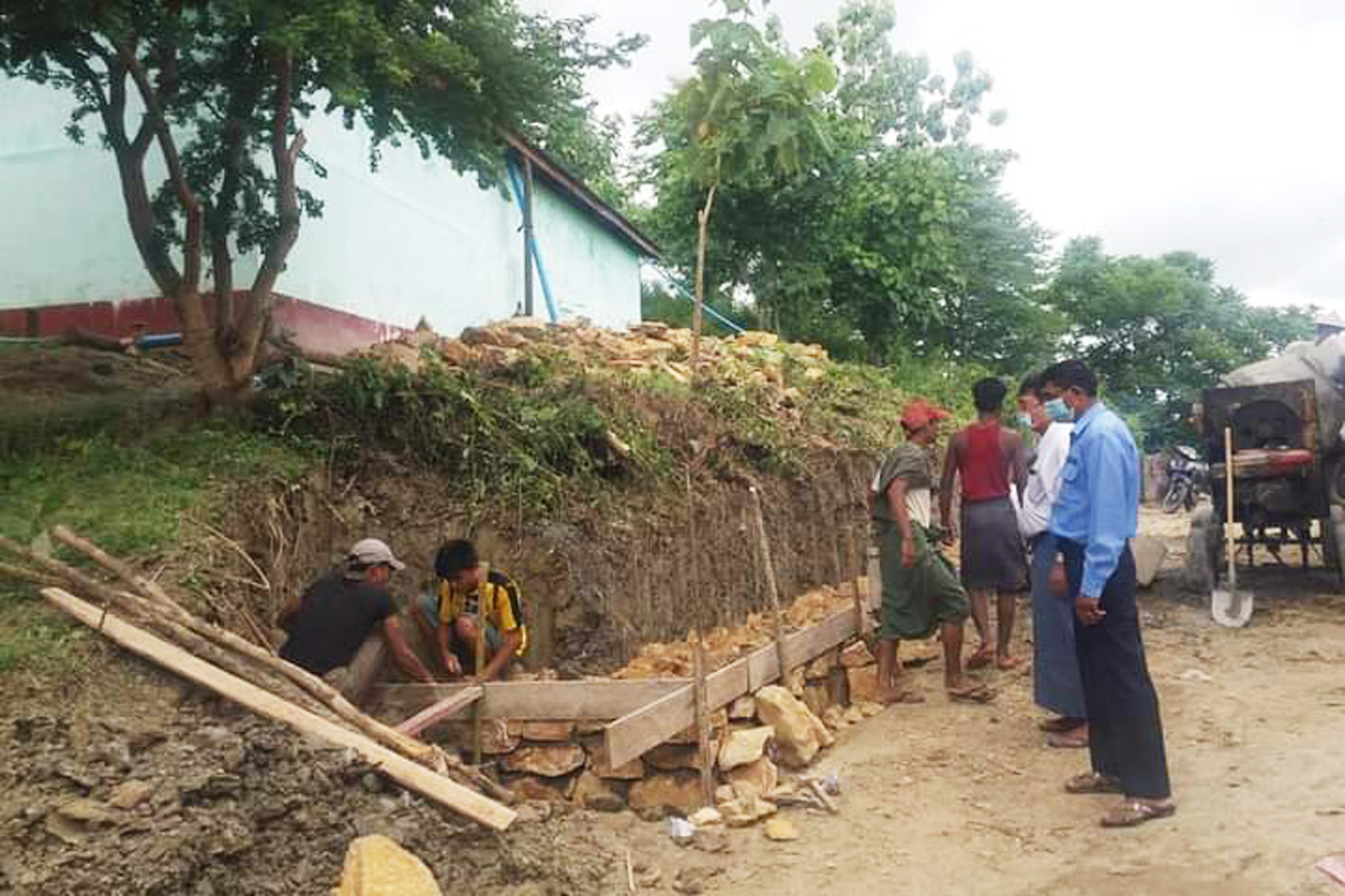 အဆိုပါ ကျောက်စီမြေထိန်းနံရံမှာ အလျား ၅၀ ပေ ၊ အနံ ၃ ပေ နှင့် အမြင့် ၁၀ ပေ ရှိပြီး စည်ပင်သာယာရေးအဖွဲ့၏ ၂၀၁၉-၂၀၂၀ ဘဏ္ဍာရေးနှစ် အသုံးစရိတ်ရန်ပုံငွေ ကျပ်ကိုးဆယ့် ခြောက်သိန်းဖြင့်ဆောင်ရွက်ခဲ့ခြင်းဖြစ်ကြောင်း မြစ်ရေတင်စနစ်ဖြင့် မြို့ရေပေး ဝေရာတွင် အသုံးပြုသည့် ရေကန်အား ကာကွယ်ထိန်းသိမ်းနိုင်ရန်အတွက် ကျောက်စီမြေထိန်း နံရံပြု လုပ်ရခြင်း ဖြစ်ကြောင်း အမှုဆောင် အရာရှိ ဦးမြင့်လှိုင်ထံမှသိရသည်။