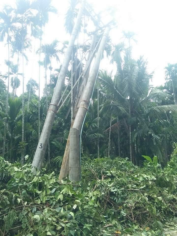 သစ်ပင်လဲကျမှုကြောင့် သံတောင်မြို့မှဘောဂလိမြို့များသို့ လျှပ်စစ်ဓါတ်အားပေးပို့လျက်ရှိသည့် (၃၃KV) ဓါတ်အားလိုင်းမှ ဓါတ်ကြိုးများပေါ်သို့ ကျရောက်သဖြင့် ဓါတ်တိုင် (၅) တိုင် ကျိုးသွားခဲ့ကြောင်း သိရသည်။