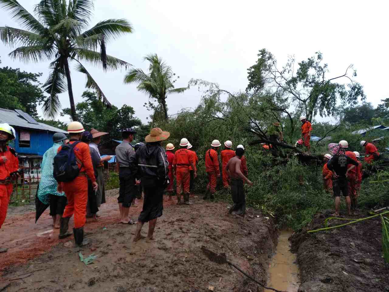 လေးပြင်းဒဏ်ခံစားခဲ့ရသော ရောက်ချောင်းကျေးရွာသို့ မြို့နယ်အုပ်ချုပ်ရေးမှူး ဦးသီဟဇော်၊ မြို့နယ်ရဲတပ်ဖွဲ့မှူး ရဲမှူးဝင်းမြင့်၊ မြို့နယ်မီးသတ်ဦးစီးမှူး ဦးရဲလင်းအောင်တို့ ဦးဆောင်သော တပ်ဖွဲ့ဝင်များက ကူညီကယ်ဆယ်ရေး လုပ်ငန်းများ ဆောင်ရွက်ခဲ့ကြောင်းနှင့် လူနှင့်တိရိစ္ဆာန်များ ထိခိုက်ဆုံးရှုံးမှုများ မရှိခဲ့ကြောင်း သိရသည်။
