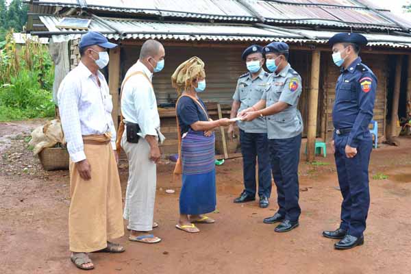 ရှမ်းပြည်နယ်(မြောက်ပိုင်း) တန့်ယန်းမြို့နယ်တွင် ပုံမှန်ဝင်ငွေမရှိသော အခြေခံလူတန်းစား အိမ်ထောင်စုများအား နိုင်ငံတော်မှ တစ်အိမ်ထောင်လျှင် ငွေကျပ်(နှစ်)သောင်းအား ထောက်ပံ့ ပေးအပ်ရာ ယမန်နေ့က ကွင်းဆင်းထောက်ပံ့ရေးအဖွဲ့ မြို့နယ်ရဲတပ်ဖွဲ့မှူး ရဲမှူးဝင်းကျော်နှင့် တာဝန်ရှိ ဌာနဆိုင်ရာများက နမ့်ဟူးလွယ်ကာ ကျေးရွာ အုပ်စုအတွင်းရှိ အိမ်ထောင်စုများအား အိမ်တိုင်ရာရောက် လိုက်လံ ထောက်ပံ့ ပေးအပ် ခဲ့သည်။