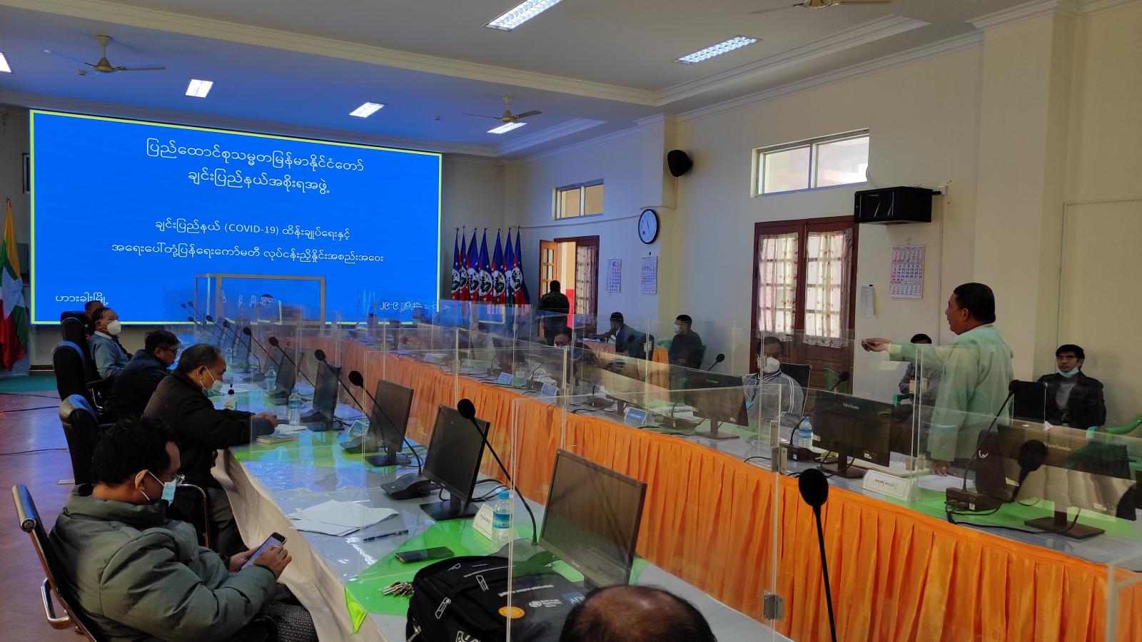 ချင်းပြည်နယ် ကိုဗစ်−၁၉ ထိန်းချုပ်ရေးနှင့်အရေးပေါ်တုံ့ပြန်ရေးကော်မတီ လုပ်ငန်းညှိနှိုင်း အစည်းအဝေးကို ယနေ့ နံနက် ၁၀ နာရီက ဟားခါးမြို့ ချင်းပြည်နယ်အစိုးရအဖွဲ့ရုံး အစည်းအဝေးခန်းမ၌ ကျင်းပသည်။