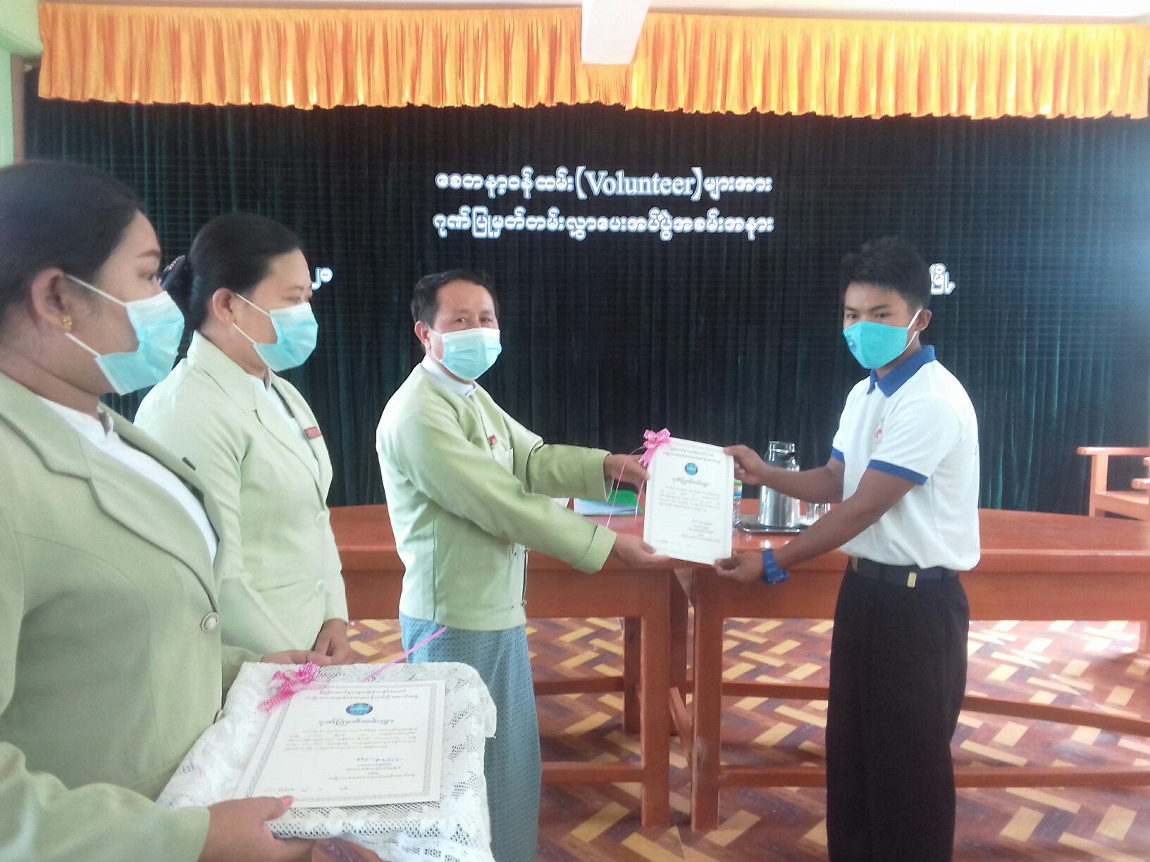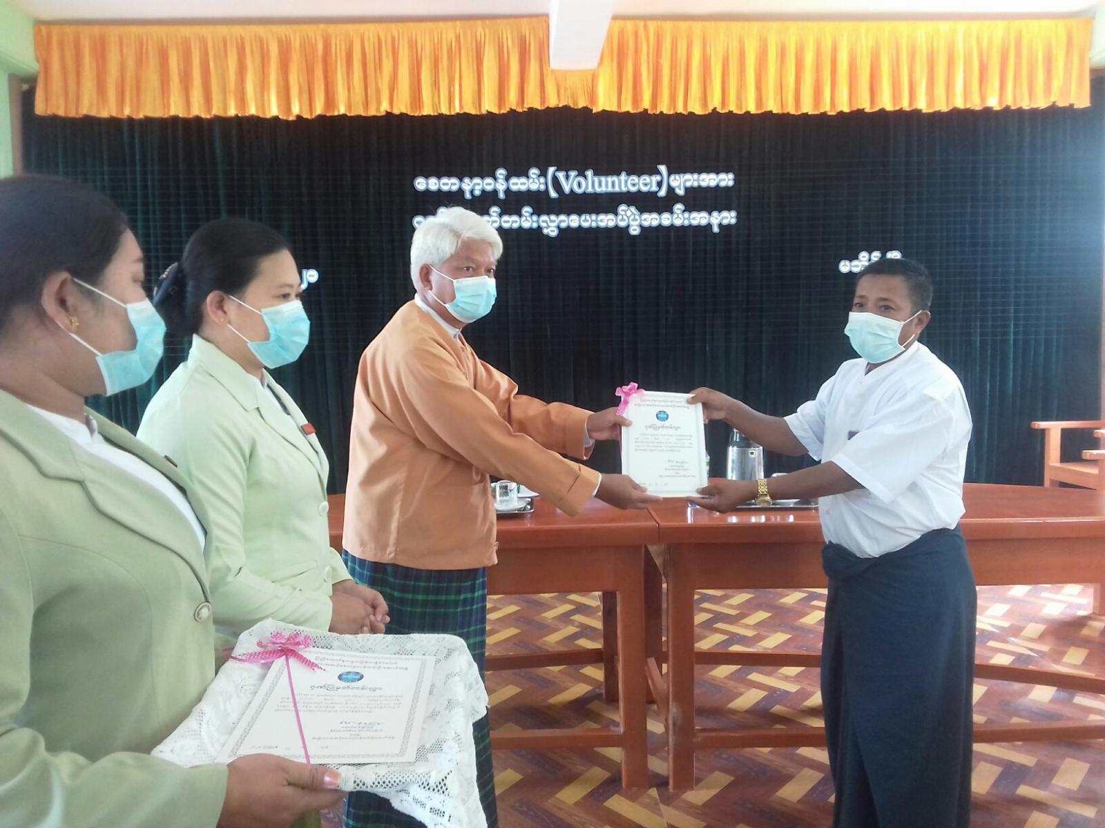ထို့နောက် ပြည်နယ်လွှတ်တော်ကိုယ်စားလှယ် ဦးမောင်ညို၊ မြို့နယ်အုပ်ချုပ်ရေးမှူး ဦးကျော်နိုင် နှင့် တာဝန်ရှိသူများက မဘိမ်းမြို့နယ်အတွင်းရှိ စေတနာ့ဝန်ထမ်း(Volunteer) ၃၀ ဦးထံသို့ ပြည်ထောင်စုသမ္မတမြန်မာနိုင်ငံတော်၊ အမျိုးသားအဆင့် စေတနာ့ဝန်ထမ်း ဦးဆောင်အဖွဲ့ဥက္ကဋ္ဌ နိုင်ငံတော်အတိုင်ပင်ခံပုဂ္ဂိုလ်မှ စေတနာ့ဝန်ထမ်း(Volunteer)များအား ပေးအပ်ချီးမြှင့် သည့် ဂုဏ်ပြုမှတ်တမ်းလွှာများကို ပေးအပ်ချီးမြှင့်ခဲ့သည်။