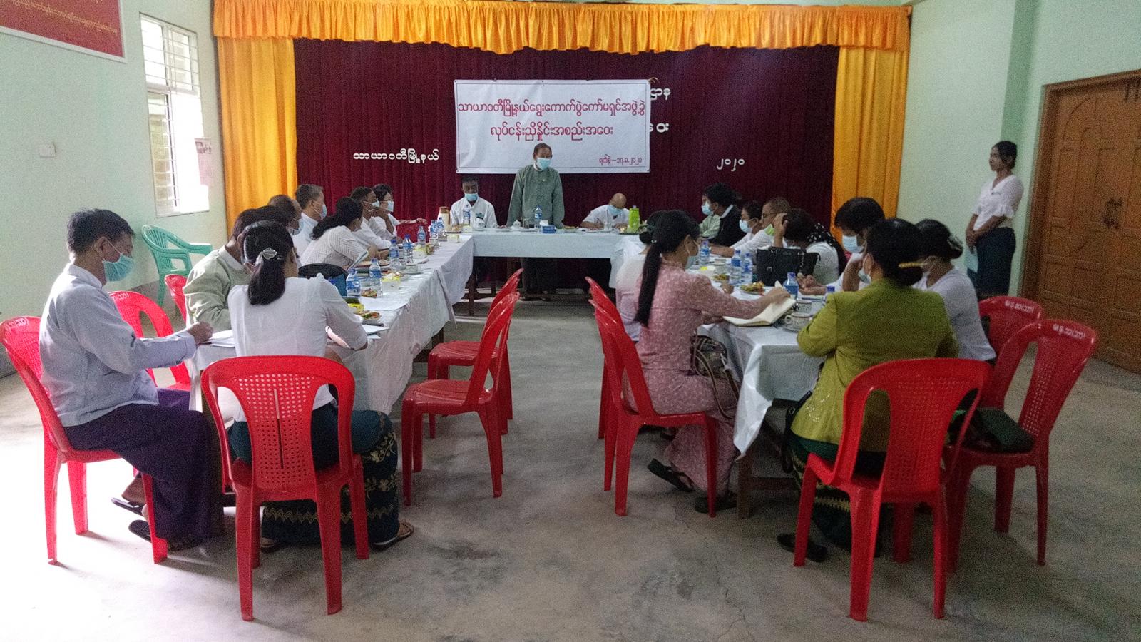 ထို့နောက် တက်ရောက်လာသည့် မြို့နယ်ရွေးကောက်ပွဲ ကော်မရှင်အဖွဲ့ခွဲအဖွဲ့ဝင်များက ရွေးကောက်ပွဲဆိုင်ရာ ကိစ္စရပ်နှင့်ပတ်သက်၍ ဆွေးနွေးတင်ပြခြင်းများ ဆောင်ရွက်ခဲ့ပြီး ပဲခူးတိုင်းဒေသကြီး ကော်မရှင်အဖွဲ့ခွဲ ဥက္ကဋ္ဌ ဦးအောင်မြင့်က နိဂုံးချုပ်စကား ပြောကြားခဲ့ကြောင်း သိရသည်။
