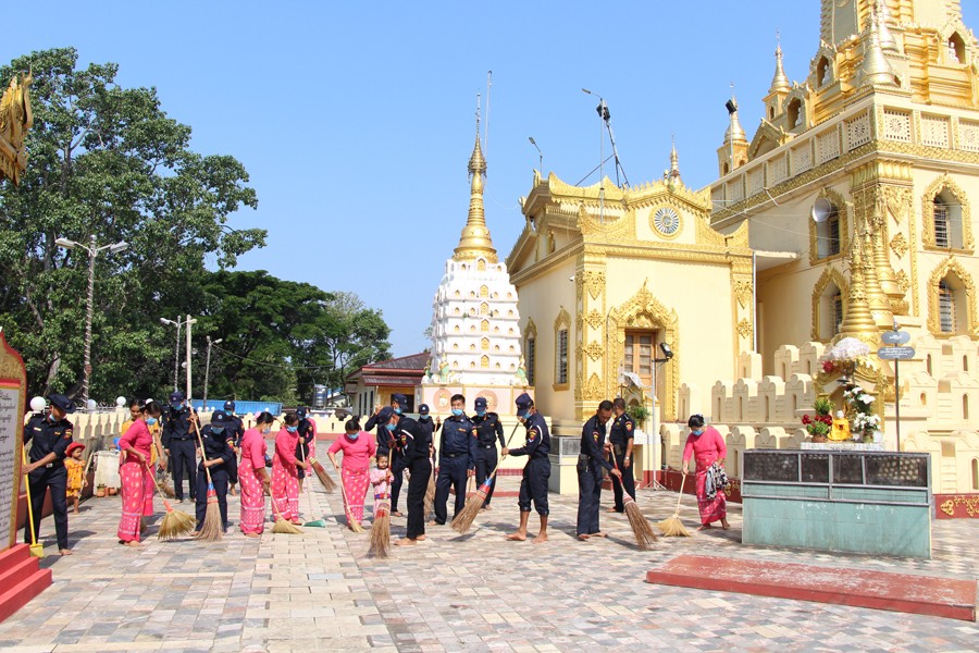 ထိုသို့ဆောင်ရွက်ရာတွင် ကယားပြည်နယ် မီးသတ်ဦးစီးဌာနမှ ပြည်နယ်မှူးဦးမြကြိုင်၊ ဒုပြည်နယ်မှူး ဦးခင်မောင်သန်းနှင့် မီးသတ်တပ်ဖွဲ့ဝင် မိသားစုများက ဆုတောင်းပြည့် မြို့နာမ်စေတီတော် မြတ်ရင်ပြင်တော်နှင့် စေတီပရဝုဏ်အတွင်းတွင် စုပေါင်းသန့်ရှင်းရေး ပြုလုပ်ခြင်းနှင့် ဘုရား ရေသပ္ပါယ်ခြင်းများကို ဆောင်ရွက်ခဲ့ကြသည်။