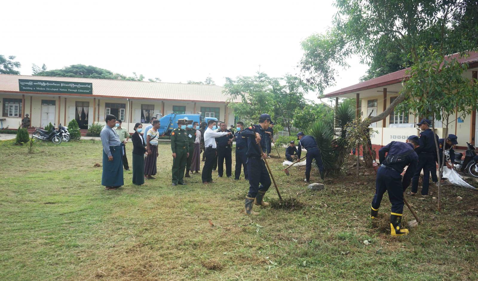 ထိုသို့ပြုလုပ်ဆောင်ရွက်ရာတွင် ကယားပြည်နယ်အစိုးရအဖွဲ့၊ ပြည်နယ်ဝန်ကြီးချုပ် ဦးဇော်မျိုးတင် ဦးဆောင်၍ အရှေ့ပိုင်းတိုင်း စစ်ဌာနချုပ် တိုင်းမှူး ဗိုလ်ချုပ် နီလင်းအောင်၊ ပြည်နယ်အစိုးရအဖွဲ့ဝင်၊ ပြည်နယ်ဝန်ကြီးများ၊ ဒေသကွပ်ကဲမှု စစ်ဌာချုပ် (လွိုင်ကော်)၊ ဒေသကွပ်ကဲရေးမှူးနှင့် တာဝန်ရှိသူများက ကျောင်းဝန်းအတွင်းတွင် စုပေါင်းသန့်ရှင်းရေး ပြုလုပ်နေမှုများ၊ ကျောင်း အဆောက်အဦ ဥပဓိရုပ်ကောင်းမွန်စေရေး ပြုပြင်နေမှုများနှင့် စာသင် ခန်းများကို လိုက်လံကြည့်ရှု စစ်ဆေးခဲ့သည်။