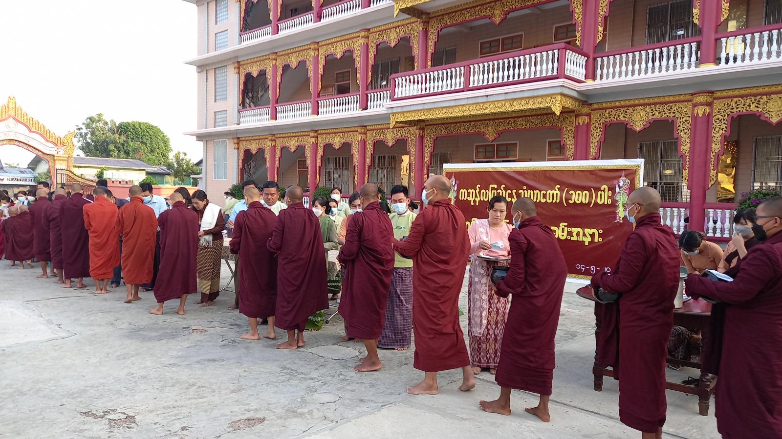 အဆိုပါ ကဆုန်လပြည့်နေ့ သံဃာတော် ( ၁၀၈ ) ပါး ဆွမ်းလောင်းလှူပွဲကို ခရိုင်/မြို့နယ် စီမံအုပ်ချုပ်ရေးအဖွဲ့ ဉက္ကဋ္ဌနှင့် အဖွဲ့ဝင်တို့က ကြီးမှူးဉီးဆောင်၍ ခရိုင်/ မြို့နယ်အဆင့် ဌာနဆိုင်ရာများ၊ ဒေသခံအလှူရှင်များနှင့် လူမှုရေးအသင်းအဖွဲ့တို့မှ ဆွမ်း၊ ဆွမ်းဟင်း ( ၅ ) မျိုးနှင့် နဝကမ္မဝတ္ထုငွေများကို လောင်းလှူပူဇော်ခဲ့ကြကြောင်း သိရသည် ။