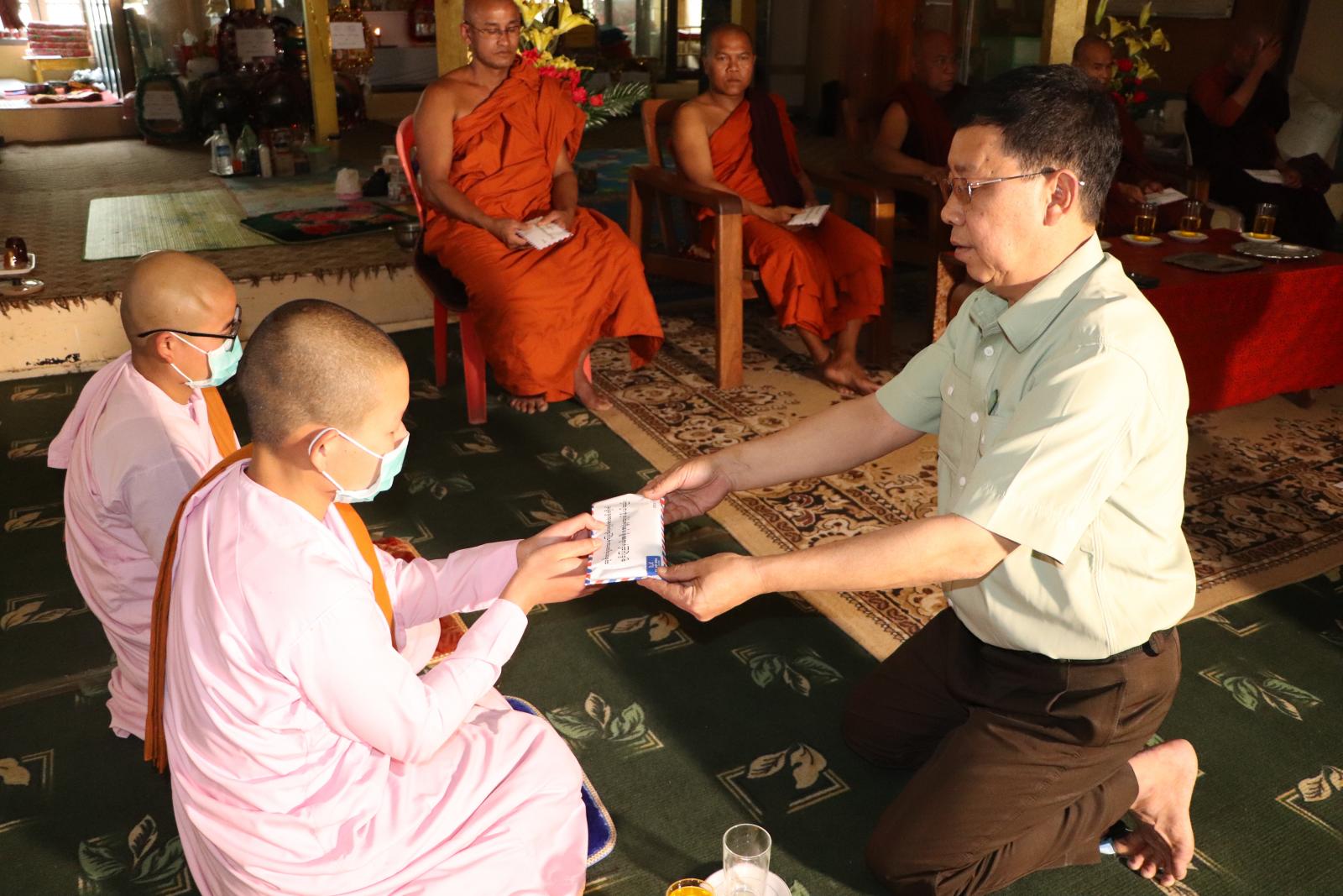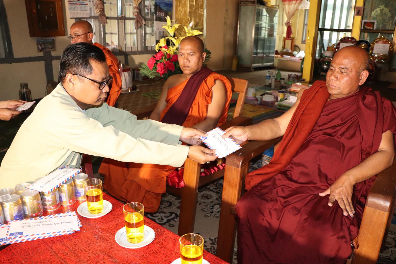 အဆိုပါအခမ်းအနားတွင် ဟားခါးမြို့နယ်အုပ်ချုပ်ရေးမှူး ဦးမိုးကျော်အောင်နှင့် ထန်တလန် မြို့နယ်အုပ်ချုပ်ရေးမှူး ဦးမိုးကျော်အောင်တို့က ဟားခါးမြို့နယ်နှင့် ထန်တလန်မြို့နယ်အတွင်းရှိ ဘုန်းတော်ကြီးကျောင်း (၁၁) ကျောင်းနှင့် သီလရှင်ကျောင်း (၁) ကျောင်းပေါင်း (၁၂) ကျောင်းတွင် သီတင်းသုံးနေထိုင်ကြသော သံဃာတော်အရှင်သူမြတ်တို့အား ဆွမ်း၊ ရိက္ခာအတွက် ချင်းပြည်နယ်အစိုးရအဖွဲ့မှ လှူဒါန်းငွေ ကျပ် ၄,၅၅၀,၀၀၀ ကို ဆက်ကပ်လှူဒါန်းသည်။