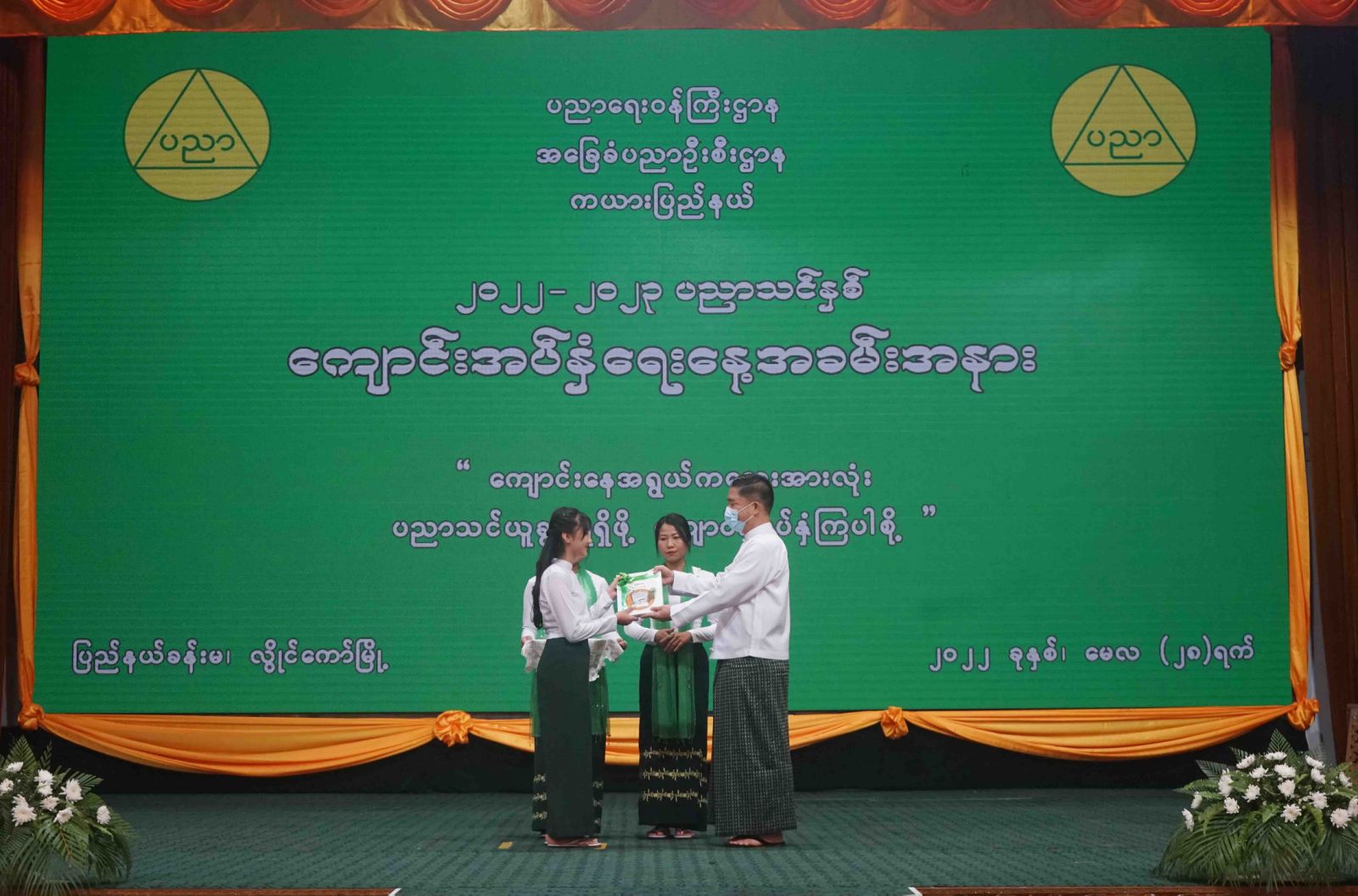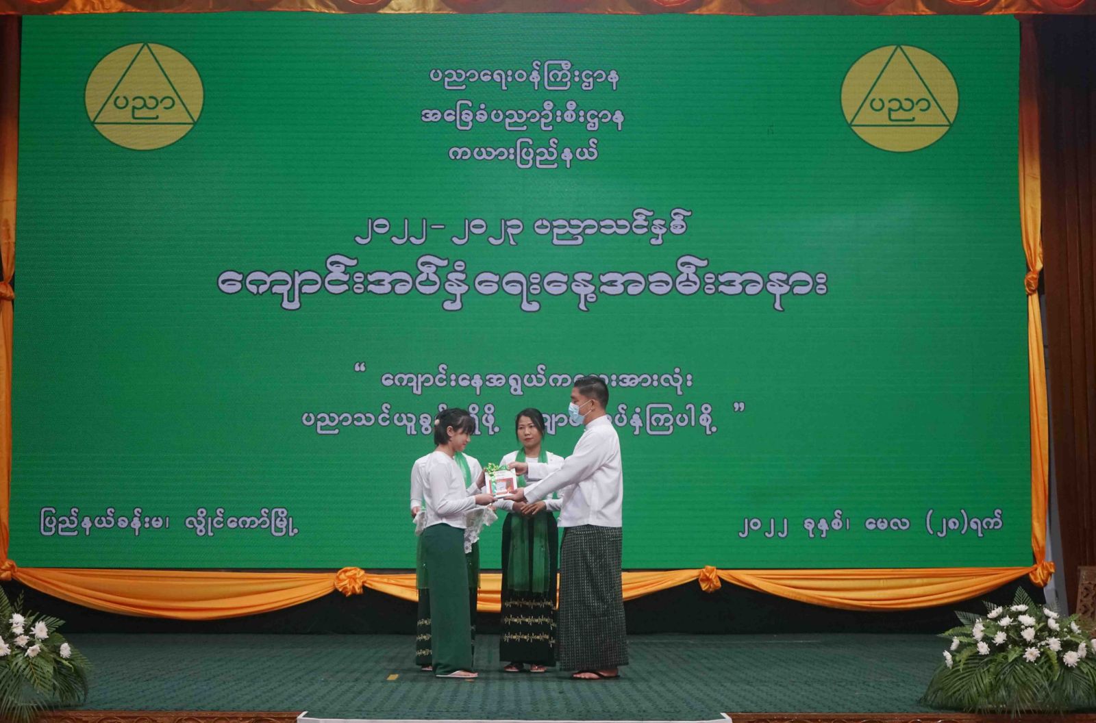 ထို့နောက် ပြည်နယ်ဝန်ကြီးချုပ်ကသင်ရိုးသစ် Grade-5 ၊ Grade-8 နှင့် Grade-11 ကျောင်းသုံးပုံနှိပ် စာအုပ်များကိုလည်း ကောင်း ၊ အရှေ့ပိုင်းတိုင်းစစ်ဌာချုပ် ၊ တိုင်းမှူးဗိုလ်ချုပ်နီလင်းအောင်က ဗလာစာအုပ် များကိုလည်းကောင်း ၊ သယံဇာတရေးရာဝန်ကြီး ဦးစောဟူးဟူးက စာရေးကိရိယာများကိုလည်းကောင်း ကျောင်းသား၊ ကျောင်းသူများအားပေးအပ်ခဲ့ပြီး ကယားပြည်နယ် ပညာရေးမှူးရုံး ၊ ညွှန်ကြားရေးမှူးက ကျောင်းအပ်နှံရေးနေ့အခမ်းအနားတွင် ဖျော်ဖြေရေးအစီအစဉ်၌ ပါဝင်ခဲ့ကြသော ကျောင်း သား ၊ ကျောင်းသူများအား ဂုဏ်ပြုမှတ်တမ်းလွှာများ ပေးအပ်ခဲ့သည်။