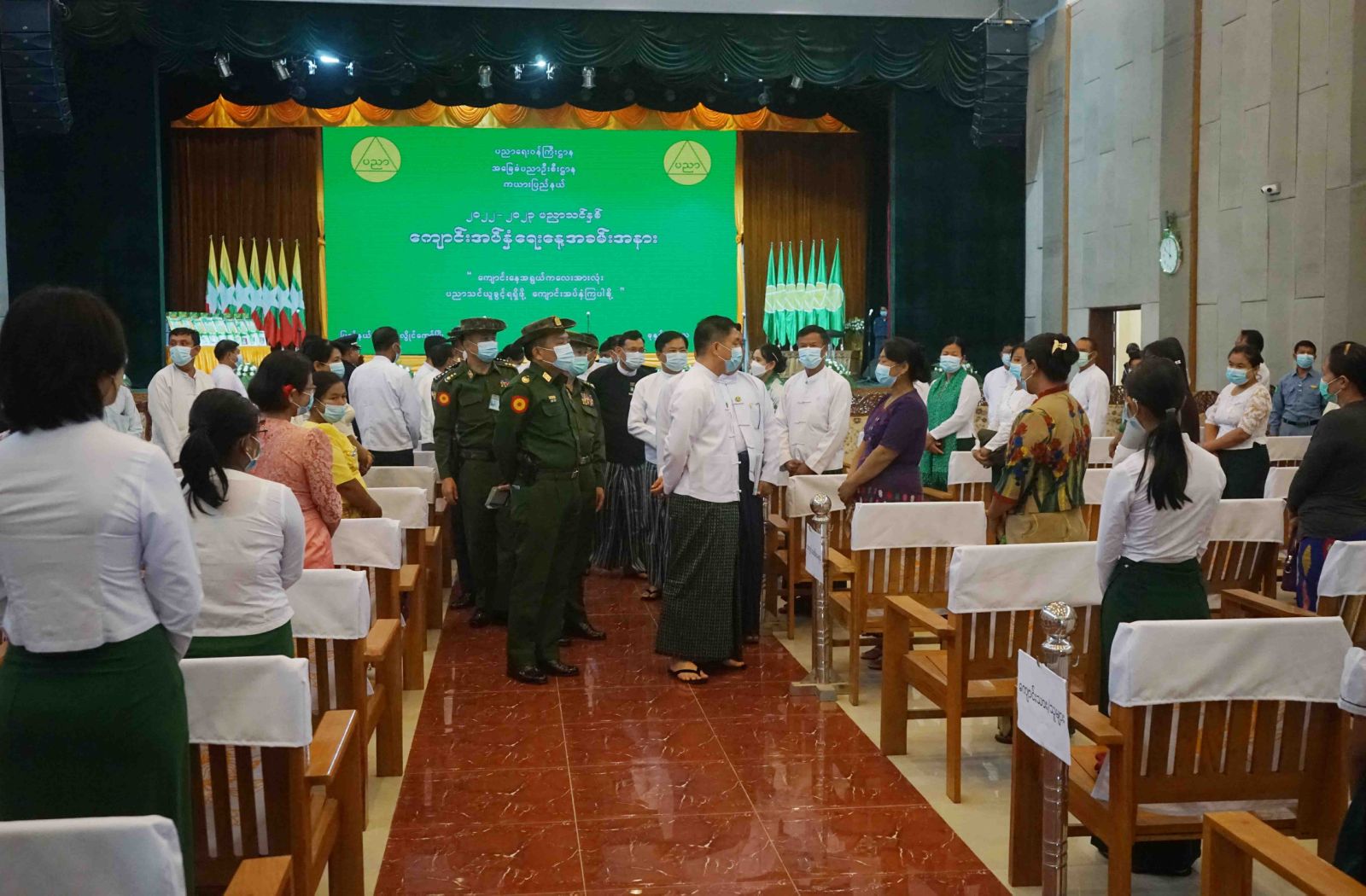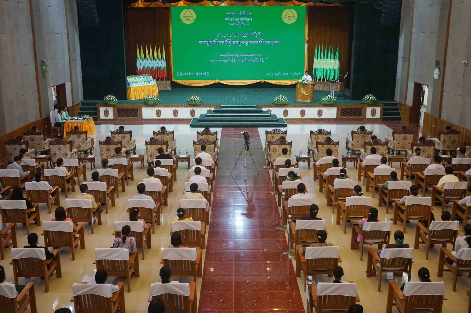 ကယားပြည်နယ် ၊ ၂၀၂၂-၂၀၂၃ ပညာသင်နှစ်ကျောင်းအပ်နှံရေးနေ့ အခမ်းအနားကို ယနေ့နံနက်ပိုင်းက ကယားပြည်နယ်၊ လွိုင်ကော်မြို့ ၊ ပြည်နယ်ခန်းမ၌ကျင်းပခဲ့ရာ ကယားပြည်နယ်အစိုးရအဖွဲ့ ၊ ပြည်နယ်ဝန်ကြီးချုပ်၊ အရှေ့ပိုင်းတိုင်းစစ်ဌာနချုပ် ၊ တိုင်း မှူး ၊ ပြည်နယ်အစိုးရအဖွဲ့ဝင် ပြည်နယ်ဝန်ကြီးများ ၊ ဒေသကွပ်ကဲမှုစစ်ဌာနချုပ်(လွိုင်ကော်) ၊ ဒေသကွပ်ကဲရေးမှူး ၊ ဌာနဆိုင်ရာ များ ၊ ကျောင်းအကျိုးတော်ဆောင်များ ၊ ကျောင်းသားမိဘများနှင့် ကျောင်းသား ၊ ကျောင်းသူများ တက်ရောက်ခဲ့ကြသည်။
