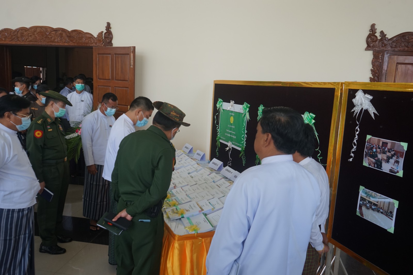 ၎င်းနောက် ပြည်နယ်ဝန်ကြီးချုပ်နှင့် တာဝန်ရှိသူများက ကျောင်းသားမိဘများနှင့် ကျောင်းသား ၊ ကျောင်းသူများအား ရင်းရင်း နှီးနှီးတွေ့ဆုံနှုတ်ဆက်ပြီး အခြေခံပညာဦးစီးဌာနမှ ခင်းကျင်းပြသထားသည့်ကျောင်းသား ၊ ကျောင်းသူများအား အခမဲ့ဖြန့်ဝေပေးသည့် အတန်းအလိုက် ကျောင်းသုံးပုံနှိပ်စာအုပ်များ ၊ ဗလာစာအုပ်များ ၊ စာရေးကိရိယာများကို လှည့်လည်ကြည့်ရှုခဲ့ကြောင်းသိရသည်။
