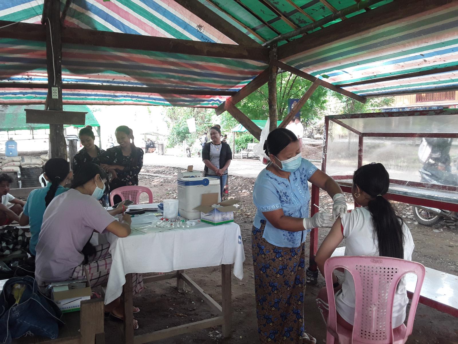 ထိုသို့ ကိုဗစ်-၁၉ ရောဂါ ကာကွယ်ဆေးထိုးနှံပေးခြင်းကို မြို့နယ်စီမံအုပ်ချုပ်ရေး အဖွဲ့ဥက္ကဋ္ဌနှင့် အဖွဲ့ဝင်များ၊ ကျန်းမာရေးဌာနနှင့် သက်ဆိုင်ရာ ဌာနဆိုင်ရာများပူးပေါင်းပြီး ကိုဗစ်-၁၉ ရောဂါ ကင်းဝေးစေရန်၊ ကာကွယ်ဆေးထိုးနှံမှု ရာနှုန်းပြည့်လွှမ်းခြုံနိုင်ရေးအတွက် ကာကွယ်ဆေး ဆက်လက်ထိုးနှံပေးလျက်ရှိကြောင်းနှင့် ကျေးရွာများသို့လည်းကွင်းဆင်းထိုးနှံပေးလျက်ရှိကြောင်း သိရသည်။