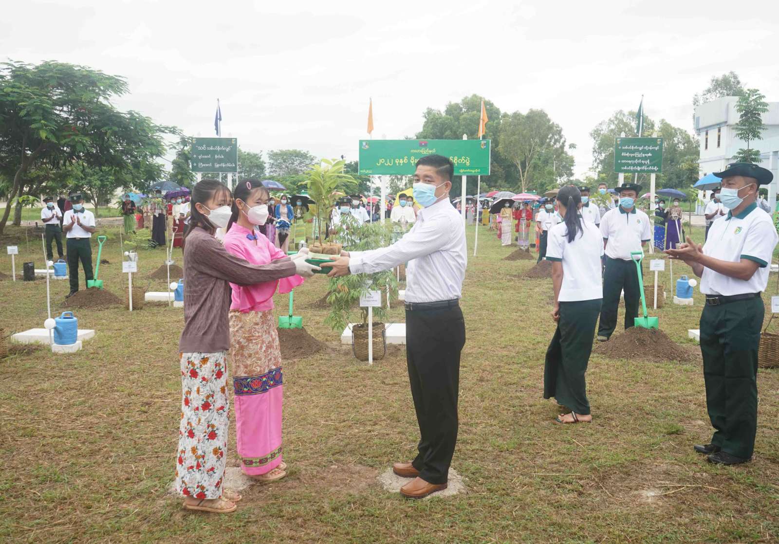 ရှေးဦးစွာ ပြည်နယ်ဝန်ကြီးချုပ်က မိုးရာသီ စုပေါင်းသစ်ပင်စိုက်ပွဲအတွက် ပျိုးပင်များကို ဖြန့်ဝေပေးအပ်ရာ လွိုင်ကော်တက္ကသိုလ် ပါမောက္ခချုပ်၊ ကယားပြည်နယ်စိုက်ပျိုးရေးဦးစီးဌာန၊ ပြည်နယ်ဦးစီးမှူးနှင့် တက္ကသိုလ်ကျောင်းသူများက လက်ခံရယူခဲ့ကြသည်။