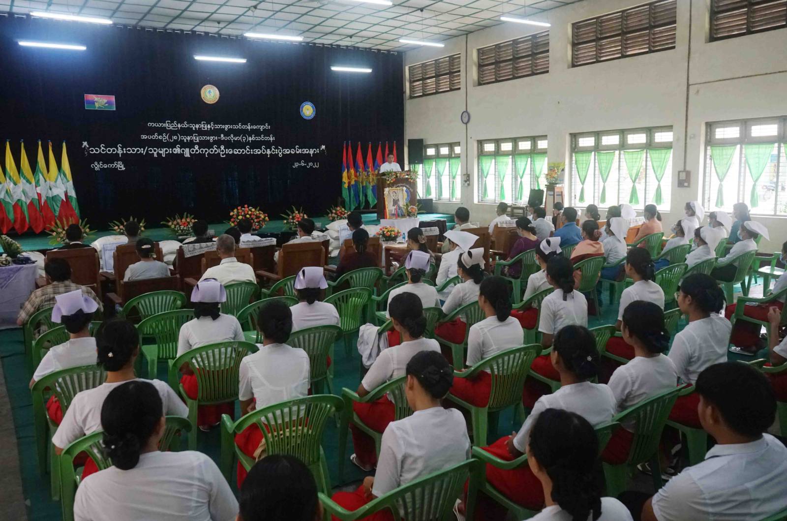ဆက်လက်ပြီး သူနာပြုနှင့် သားဖွားသင်တန်းကျောင်းမှ ကျောင်းအုပ်ကြီးနှင့် တာဝန်ရှိသူများက သင်တန်းသား၊ သင်တန်းသူများအား ဂျူတီကုတ်နှင့်ဦးဆောင်း အပ်နှင်းပေးခဲ့သည်။
