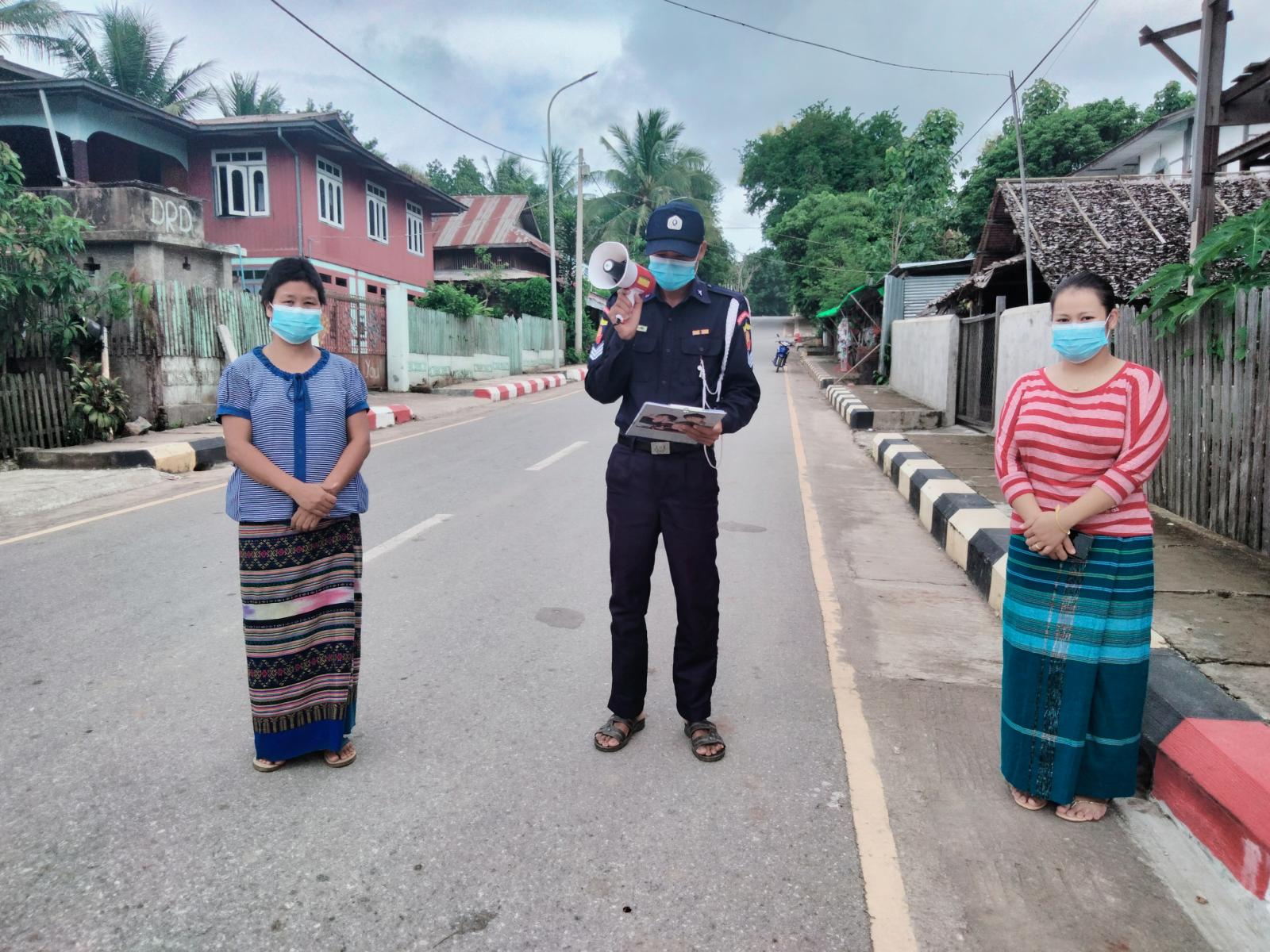 ထိုသို့ ဆောင်ရွက်ရာတွင် ပြန်ကြားရေးနှင့်ပြည်သူ့ဆက်ဆံရေးဦးစီးဌာနနှင့် မီးသတ်ဦးစီးဌာနတို့ ပူးပေါင်း၍ ပြည်သူများ အား အပြင်ထွက်တိုင်း ပါးစပ်နှင့်နှာခေါင်းစည်း (Mask)ကို စနစ်တကျ မပျက်မကွက်တပ်ဆင်ရန်၊ လက်တွင်ကပ်ပါလာ သော ဗိုင်းရပ်စ်ပိုးကို ပျက်စီးစေရန်အတွက် လက်ကိုဆပ်ပြာနှင့်ရေကို အသုံးပြု၍ အနည်းဆုံးစက္ကန့် ၂၀ ကြာအောင် ဆေးကြောရန်၊ ကိုဗစ် ကာကွယ်ဆေး အကြိမ်ပြည့်ထိုးနှံရန်နှင့် ကာကွယ်ဆေးအကြိမ်ပြည့် ထိုးနှံပြီးစီးမှု ၆ လနှင့် အထက်ရှိသော ပြည်သူများအနေဖြင့် ထပ်ဆောင်းကာကွယ်ဆေး ထိုးနှံရန်တို့ကို အသိပေးနှိုးဆော်ခဲ့ကြောင်း သိရသည်။