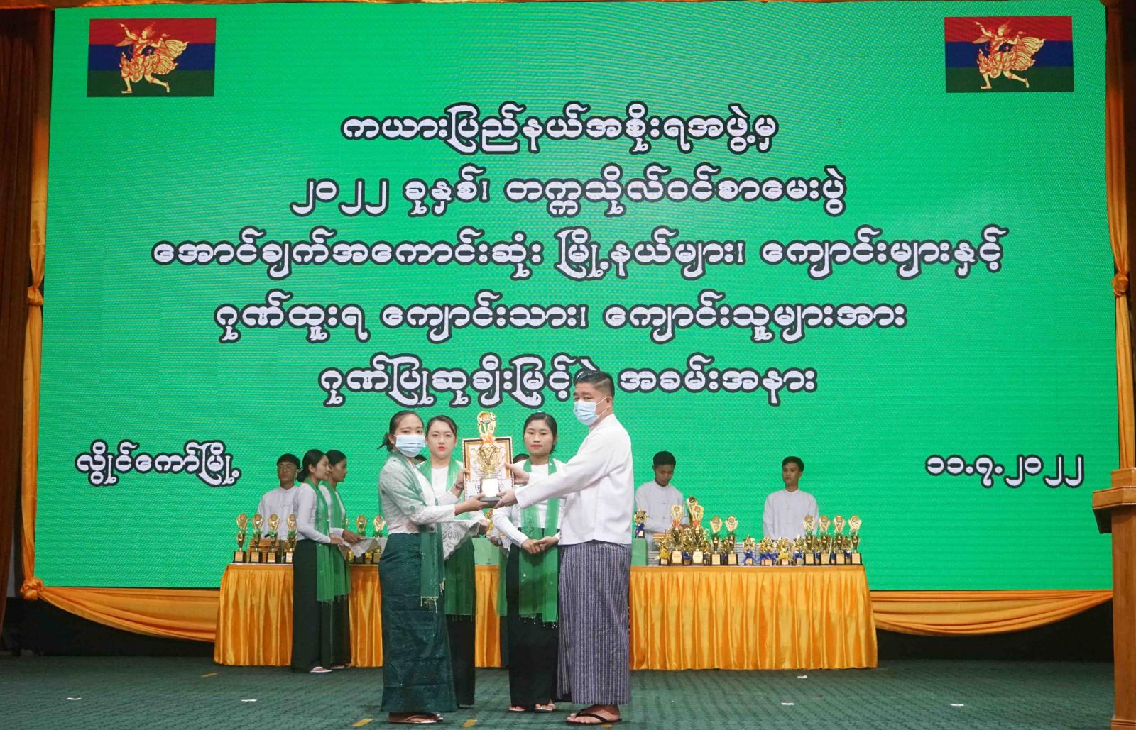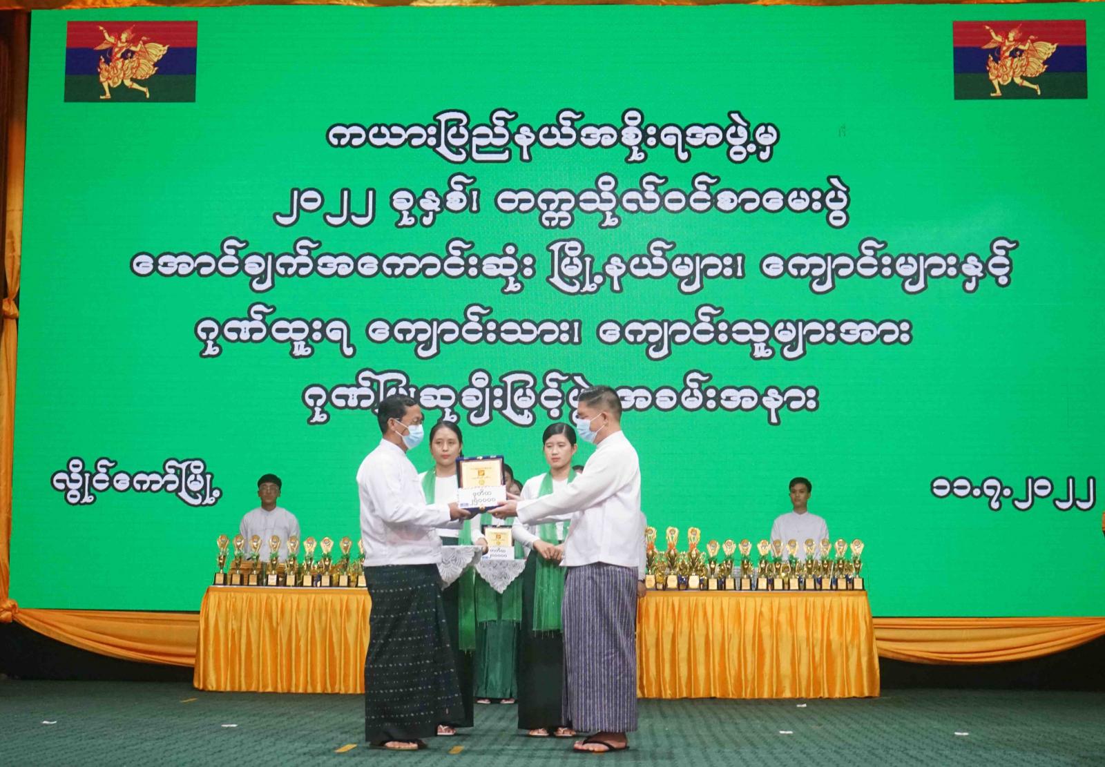 ကယားပြည်နယ်အစိုးရအဖွဲ့မှ ၂၀၂၂ ခုနှစ်၊ တက္ကသိုလ်ဝင်စာမေးပွဲတွင် ပြည်နယ်အတွင်းရှိ အောင်ချက်အကောင်းဆုံးမြို့နယ်များ၊ ကျောင်းများနှင့် ဂုဏ်ထူးရထူးချွန် ကျောင်းသား၊ ကျောင်းသူများအား ဆုချီးမြှင့်ခြင်း အခမ်းအနားကို ယနေ့နံနက်ပိုင်းက လွိုင်ကော်မြို့၊ ပြည်နယ်ခန်းမ၌ ကျင်းပပြုလုပ်ခဲ့ရာ ကယားပြည်နယ်အစိုးရအဖွဲ့၊ ပြည်နယ်ဝန်ကြီးချုပ်နှင့် ပြည်နယ်အစိုးရအဖွဲ့ဝင်၊ ပြည်နယ်ဝန်ကြီးများ၊ ဒေသကွပ်ကဲမှုစစ်ဌာနချုပ်(လွိုင်ကော်)၊ ဒေသကွပ်ကဲရေးမှူး၊ ဌာနဆိုင်ရာများ၊ ဂုဏ်ထူးရကျောင်းသား၊ ကျောင်းသူများနှင့် ကျောင်းသားမိဘများ တက်ရောက်ခဲ့ကြသည်။