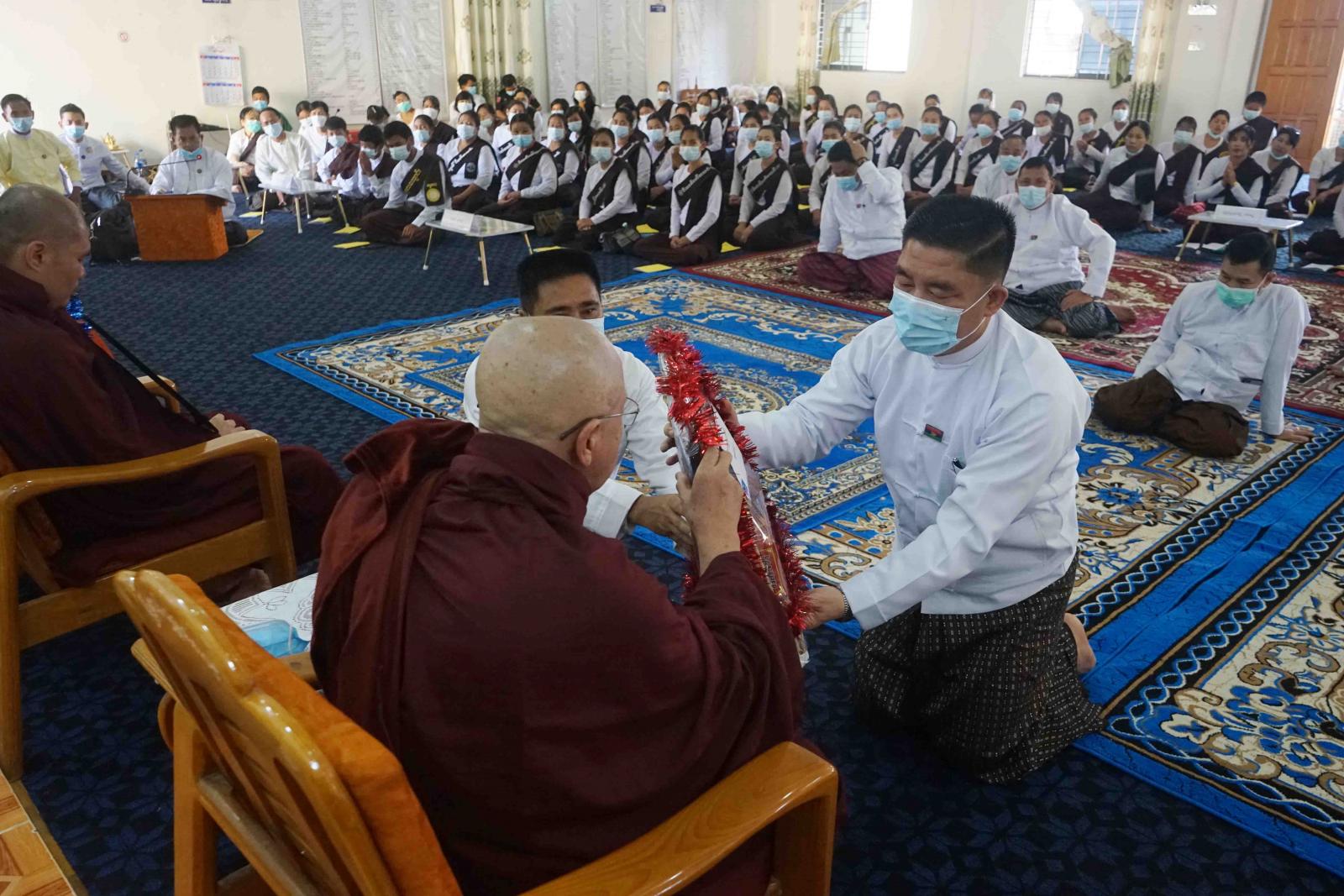 ဆက်လက်၍ မြို့နယ်သံဃနာယကအဖွဲ့ ဒုတိယဥက္ကဋ္ဌ၊ ဥတ္တရုံပရိယတ္တိစာသင်တိုက်၏ ဦးစီးပဓာနနာယက ဆရာတော်ဘဒ္ဒန္တဇိနောဘာသမှ ဝါဆိုလပြည့် ဓမ္မစကြာအခါတော်နေ့ သိကောင်းစရာများ မိန့်ကြားတော်မူပြီး ပြည်နယ်ဝန်ကြီးချုပ်နှင့် ပြည်နယ်အစိုးရအဖွဲ့ဝင်၊ ပြည်နယ်ဝန်ကြီးများက ဆရာတော်သံဃာတော် အရှင်သူမြတ်တို့အား လှူဖွယ်ဝတ္ထုပစ္စည်းများ ဆက်ကပ်လှူဒါန်းခဲ့သည်။