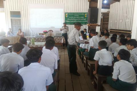 ကရသူရိမြို့ အခြေခံပညာအလယ်တန်းကျောင်း၌ မီးခိုးမြူငွေ့ လျှော့ချရေးဆိုင်ရာ အသိပညာပေး ဟောပြောပွဲကျင်းပ