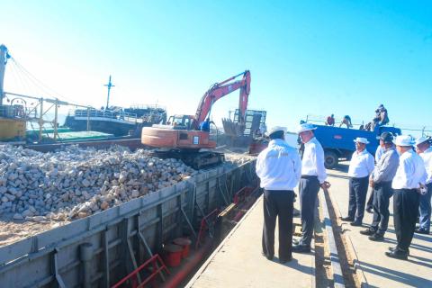 ရခိုင်ပြည်နယ်အစိုးရအဖွဲ့နှင့် ရန်ကုန်တိုင်းဒေသကြီးအစိုးရအဖွဲ့၏ စီစဉ်ကြီးကြပ်မှုဖြင့် ရခိုင်ပြည်နယ်သို့ သင်္ဘောများဖြင့် တည်ဆောက်ရေးသုံးပစ္စည်းများ၊ ဆန်နှင့်အခြေခံစားသောက်ကုန်ပစ္စည်းများကို ပို့ဆောင်ပေးလျက်ရှိရာ စစ်တွေမြို့ ဘက်စုံသုံးဆိပ်ကမ်းတွင် အမ်ဗွီမြန်မာ့အလှသင်္ဘောဖြင့် ရန်ကုန်မြို့မှ တည်ဆောက်ရေးသုံး ပစ္စည်းများ၊ အမ်ဗွီရွှေရည်ဝတ်မှုန်သင်္ဘောဖြင့် ဆန်နှင့်အခြေခံစားသောက်ကုန်ပစ္စည်းများ ရောက်ရှိလာကာ ကုန်တင်ကုန်ချပြုလုပ်နေမှုကို ရခိုင်ပြည်နယ်ဝန်ကြီးချုပ် ဦးထိန်လင်းနှင့် ပြည်နယ်အစိုးရအဖွဲ့ဝင်များ၊ ဌာနဆိုင်ရာ တာဝန်ရှိသူများက ယနေ့နံနက်ပိုင်းတွင် သွားရောက်ကြည့်ရှုစစ်ဆေးကြသည်။