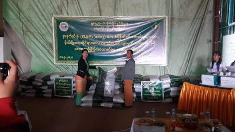 ရှမ်းပြည်နယ်(မြောက်ပိုင်း)၊ ကျောက်မဲခရိုင်၊ သီပေါမြို့နယ် စိုက်ပျိုးရေးဦးစီးဌာနမှ ကျင်းပပြုလုပ်သော နာနတ်သီးနှံ(GAP) (Good Agricultural Practice) (၁၁၀၂) ဧက စံပြစိုက်ခင်းတောင်သူများ အား စိုက်ပျိုးရေးဆိုင်ရာ အလေ့အကျင့်ကောင်းများ မှတ်တမ်းစာအုပ်နှင့် သဘာဝမြေသြဇာ ထောက်ပံ့ ပေးအပ်ပွဲ အခမ်းအနားအား ယမန်နေ့နံနက် (၉)နာရီအချိန်က နမ့်ရမ်းကျေးရွာရှိ နာနတ်သီးအခြောက်ခံ စက်ရုံတွင် ပြုလုပ်ခဲ့သည်။
