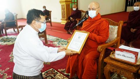 ပျဉ်းမနားမြို့နယ်၌ ၂၀၂၁ ခုနှစ် ဓမ္မာစရိယစာမေးပွဲတွင် ကြီးကြပ်ဆရာတော်များနှင့် စာဖြေသံဃာတော်များအား ဆွမ်းဆက်ကပ်လှူဒါန်း